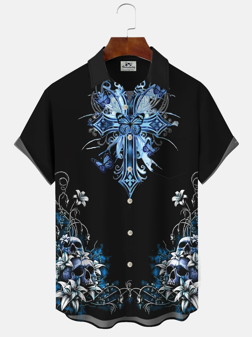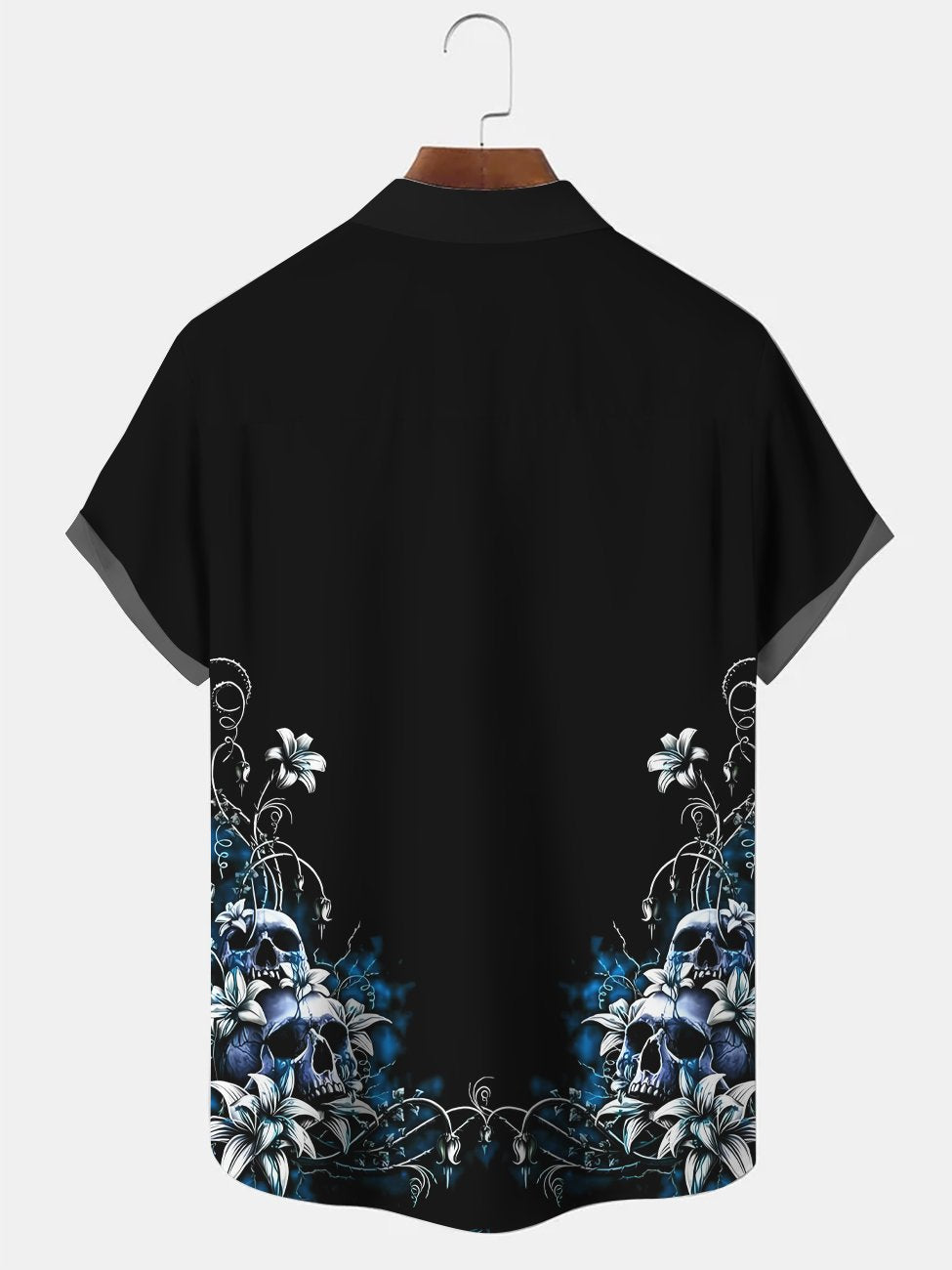 Alohadaddy Skull Button Pocket Casual Short Sleeve Shirt