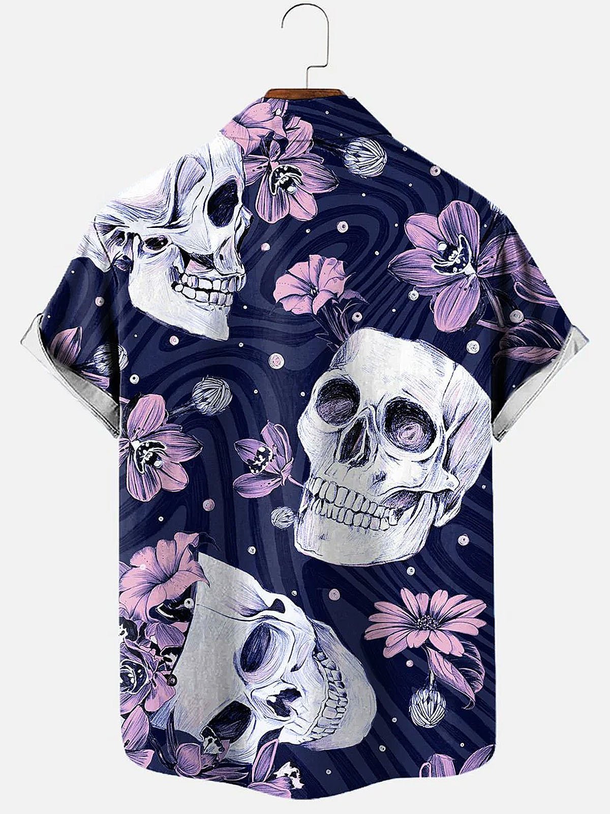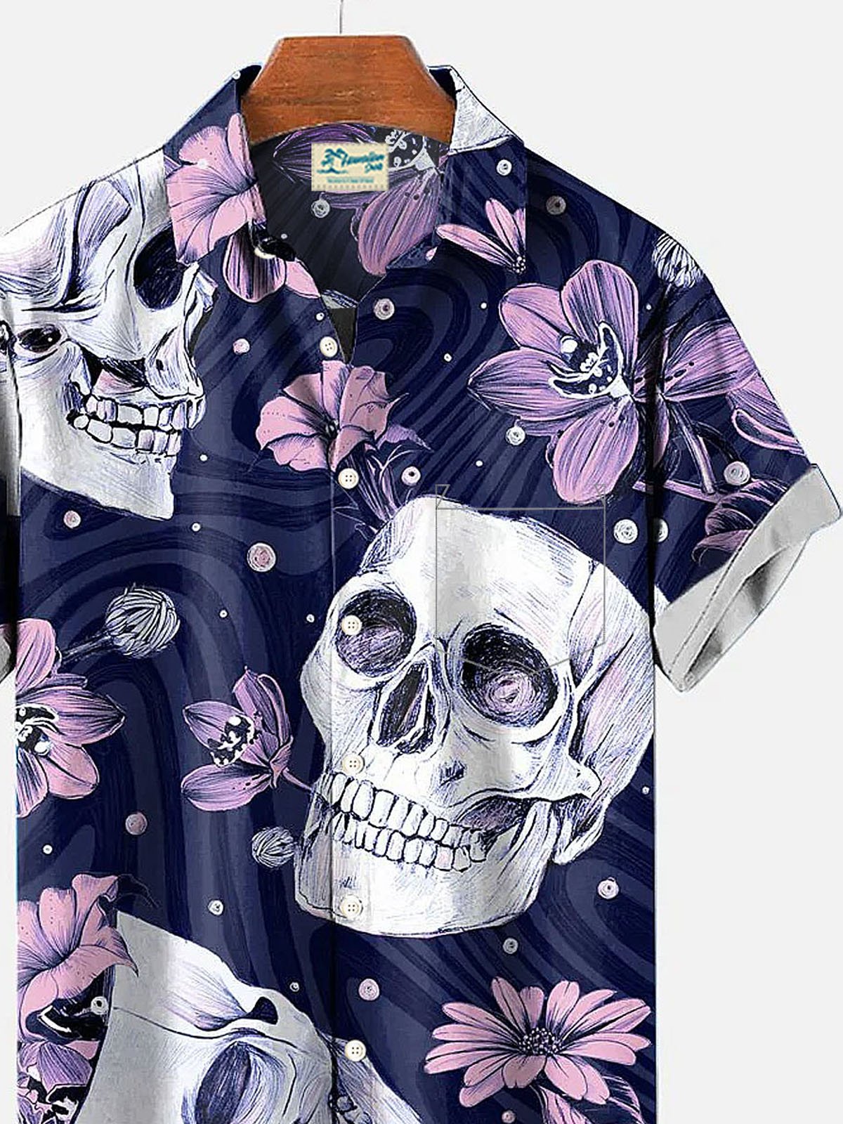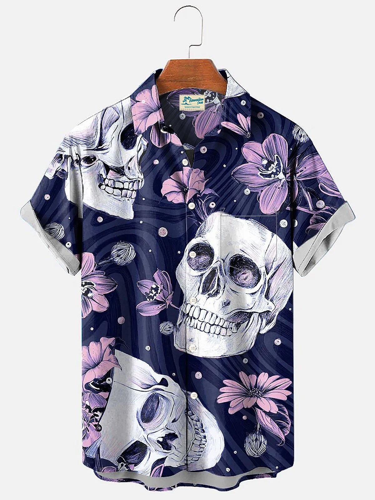 Alohadaddy Skull Floral Men's Button Pocket Shirt