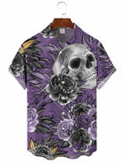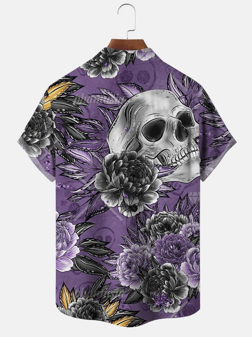 Men's Purple Hawaiian Floral Skull Short Sleeve Shirt