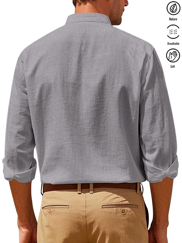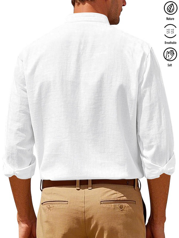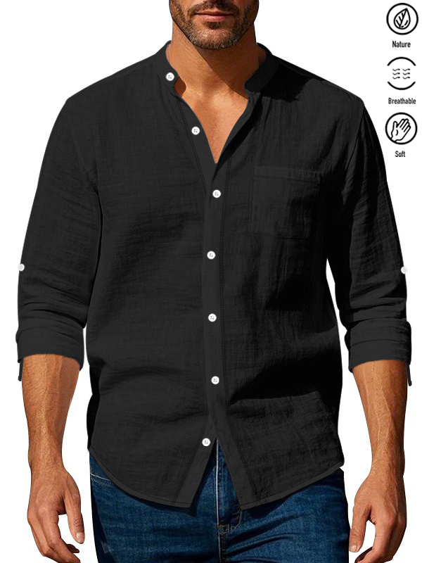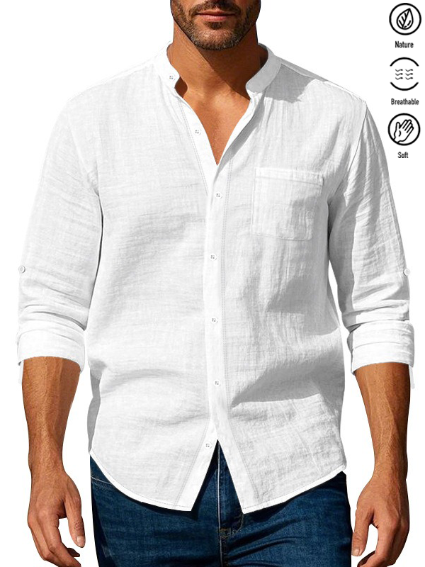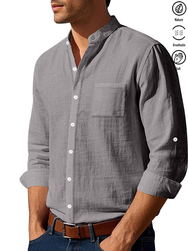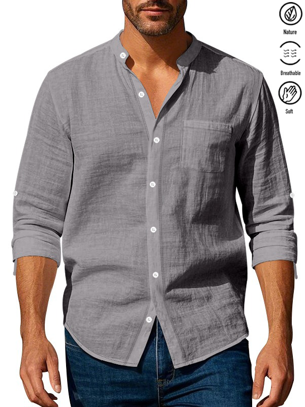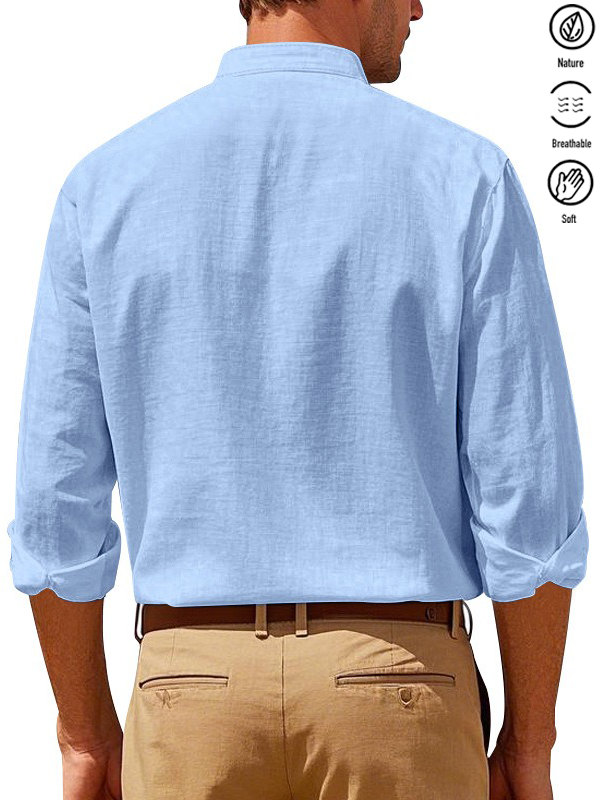 Alohadaddy® Basic Solid Color Cotton Linen Print Men's Button Pocket Long Sleeve Shirt Big & Tall