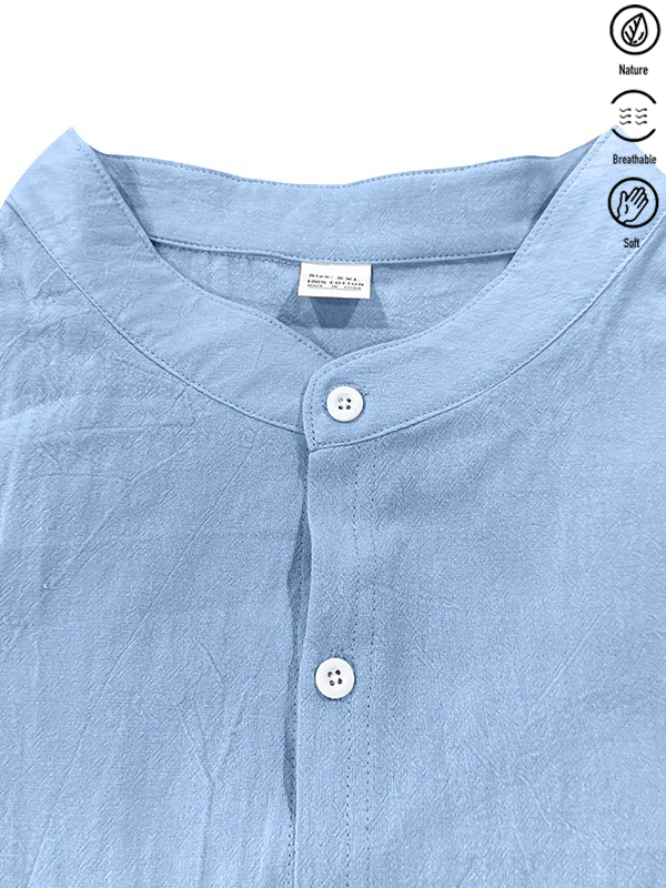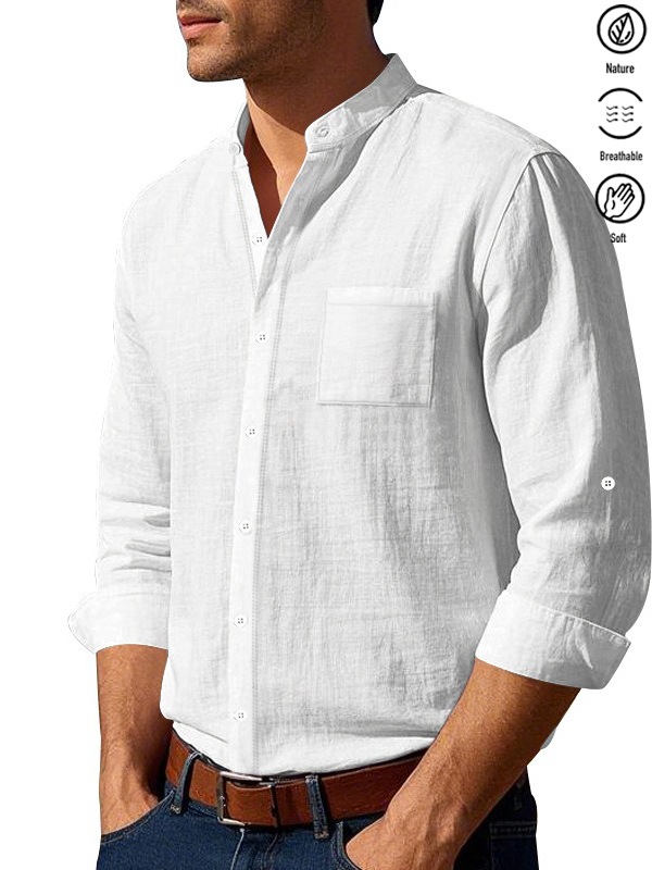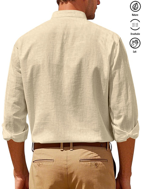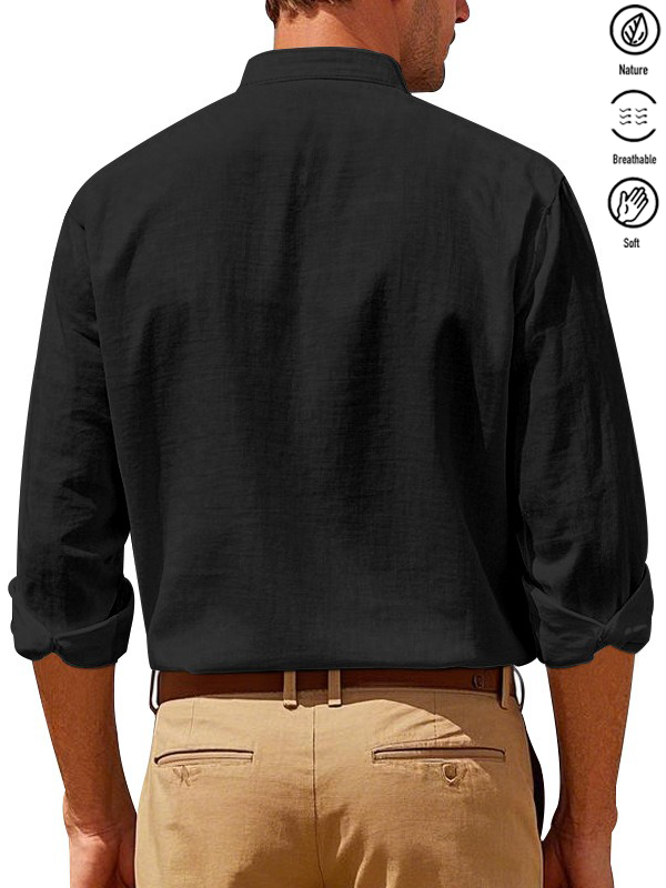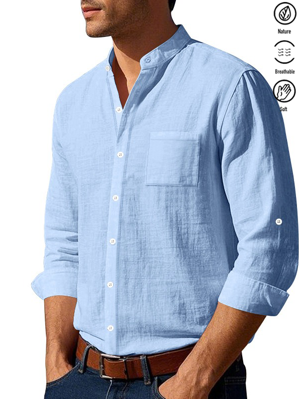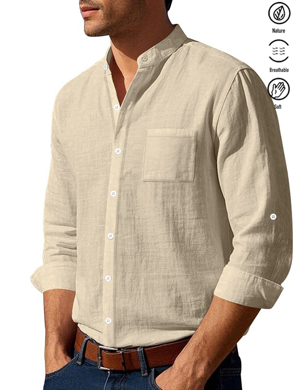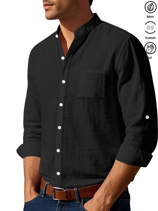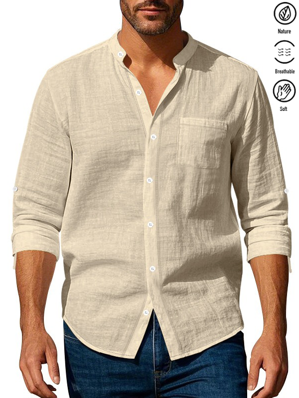 Alohadaddy® Basic Solid Color Cotton Linen Print Men's Button Pocket Long Sleeve Shirt Big & Tall