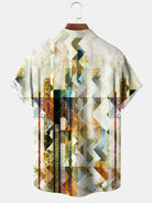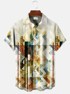 Alohadaddy Retro Ethnic Style Geometric Pattern Men's Pocket Button Casual Short Sleeve Shirt