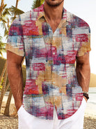 Alohadaddy Retro Geometric Pattern Men's Pocket Button Casual Vacation Short Sleeve Shirt