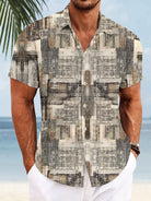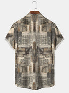 Alohadaddy Retro Geometric Pattern Men's Pocket Button Casual Vacation Short Sleeve Shirt