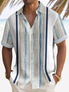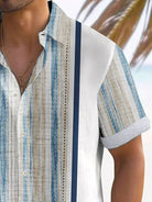 Alohadaddy Retro Gradient Bowling Splicing Printed Men's Button Pocket Short Sleeve Shirt