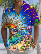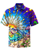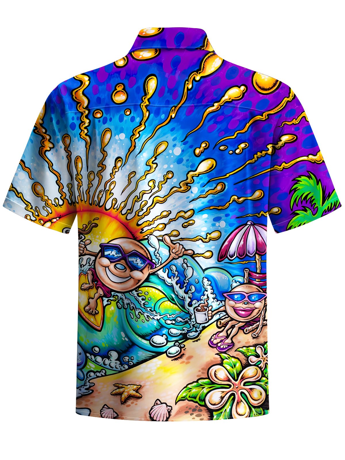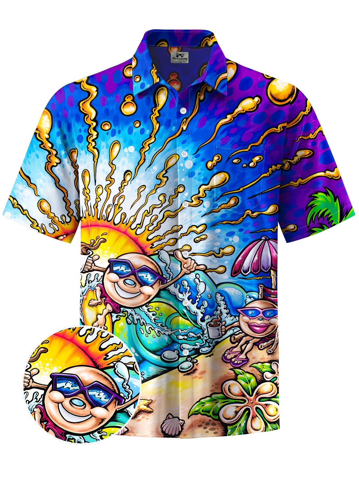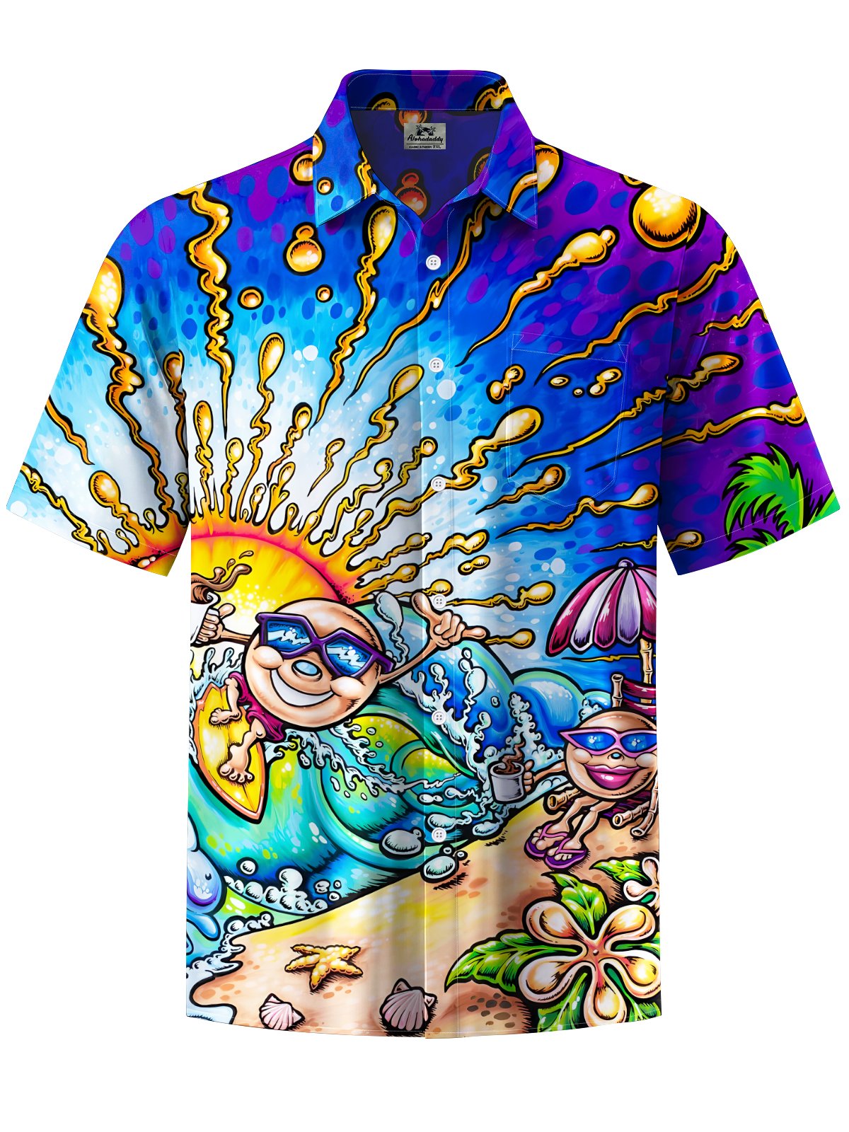 Alohadaddy® Hawaii Surf Graffiti Print Chest Pocket Stretch Men's Short Sleeve Shirt Big & Tall
