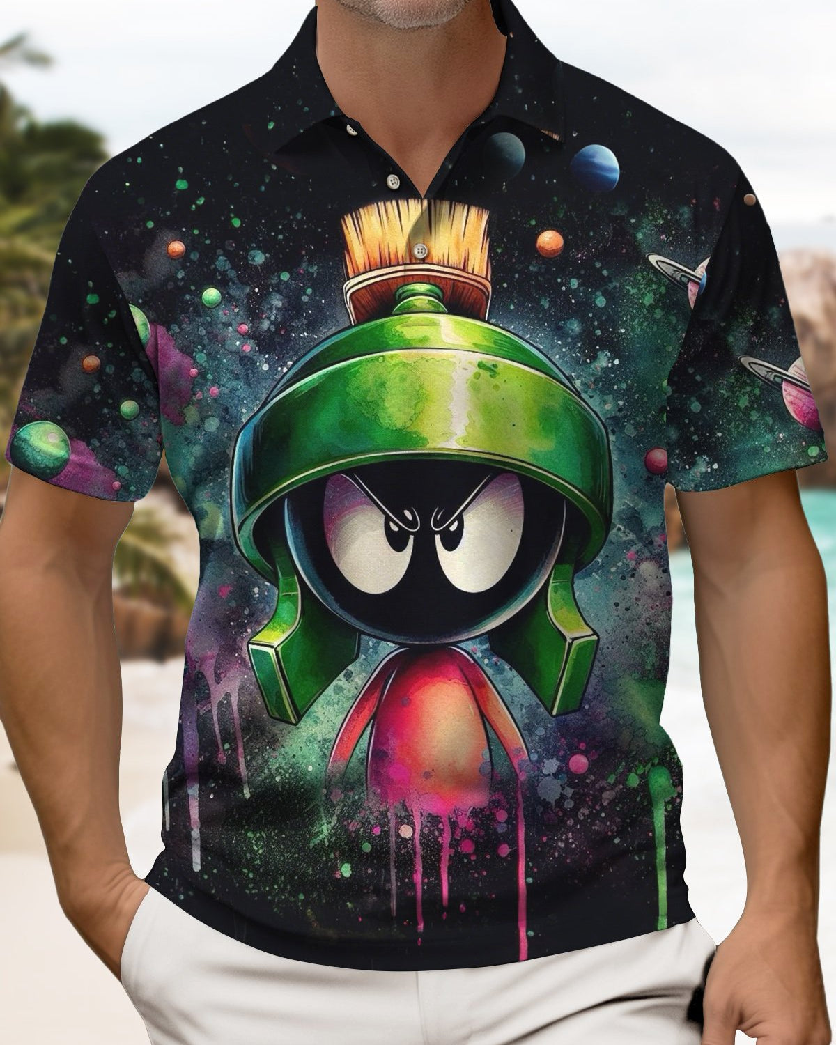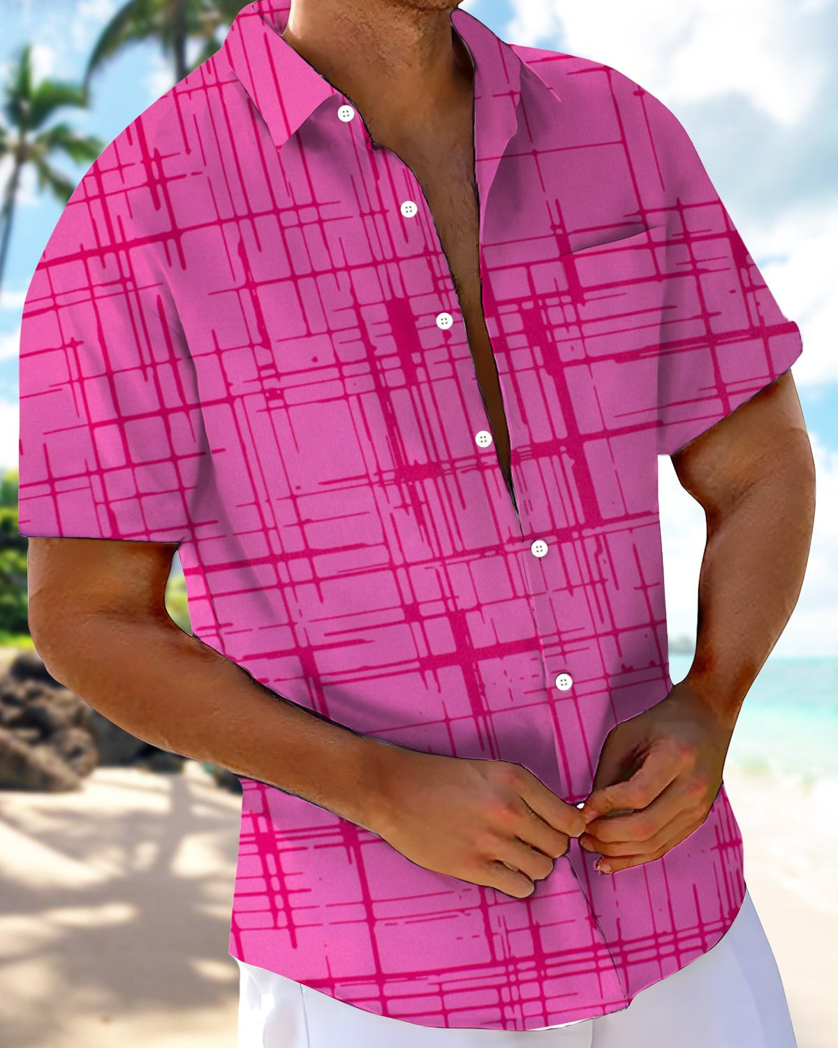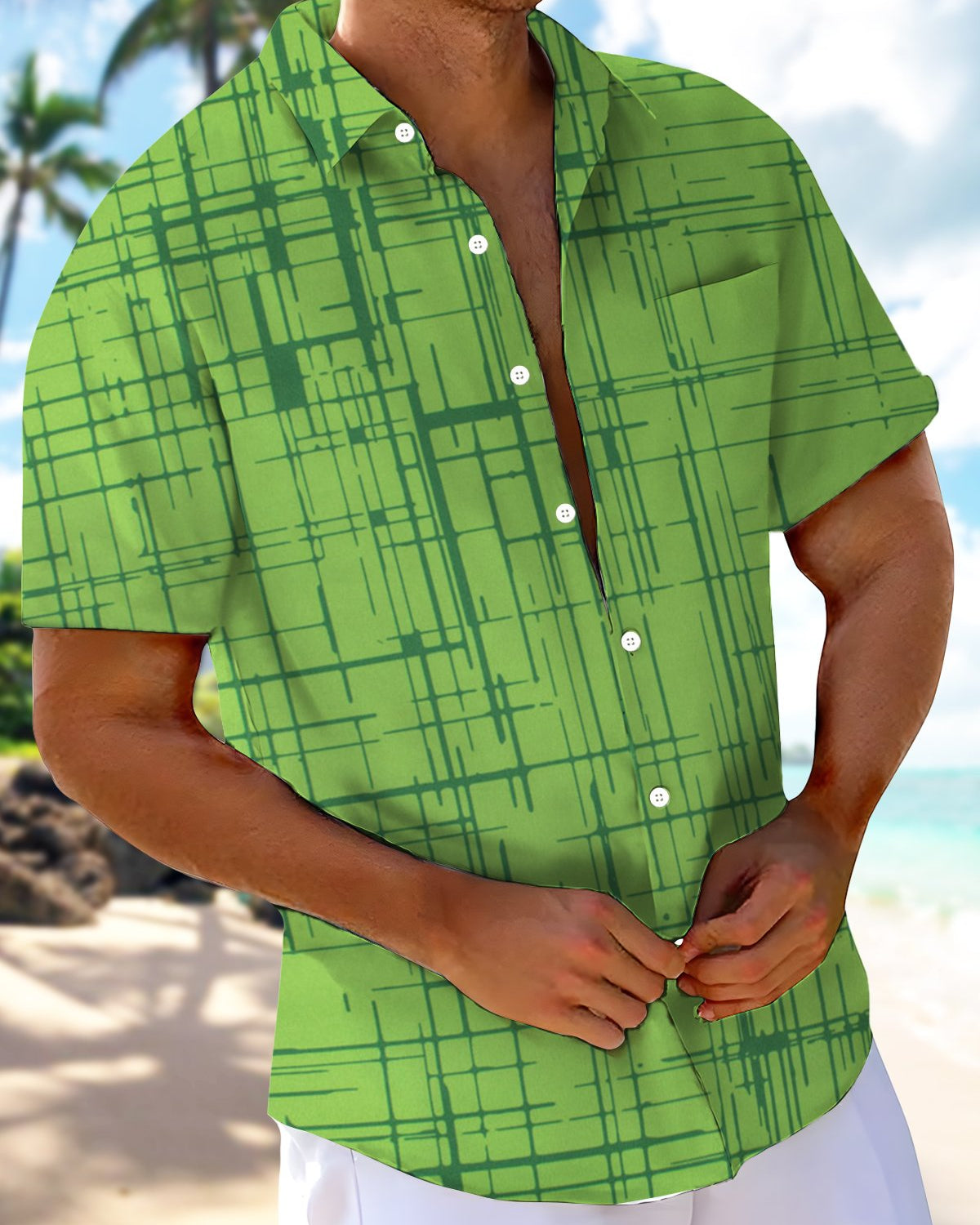Alohadaddy® Hawaiian Surf Art Print Chest Pocket Men's Short Sleeve Shirt Big & Tall