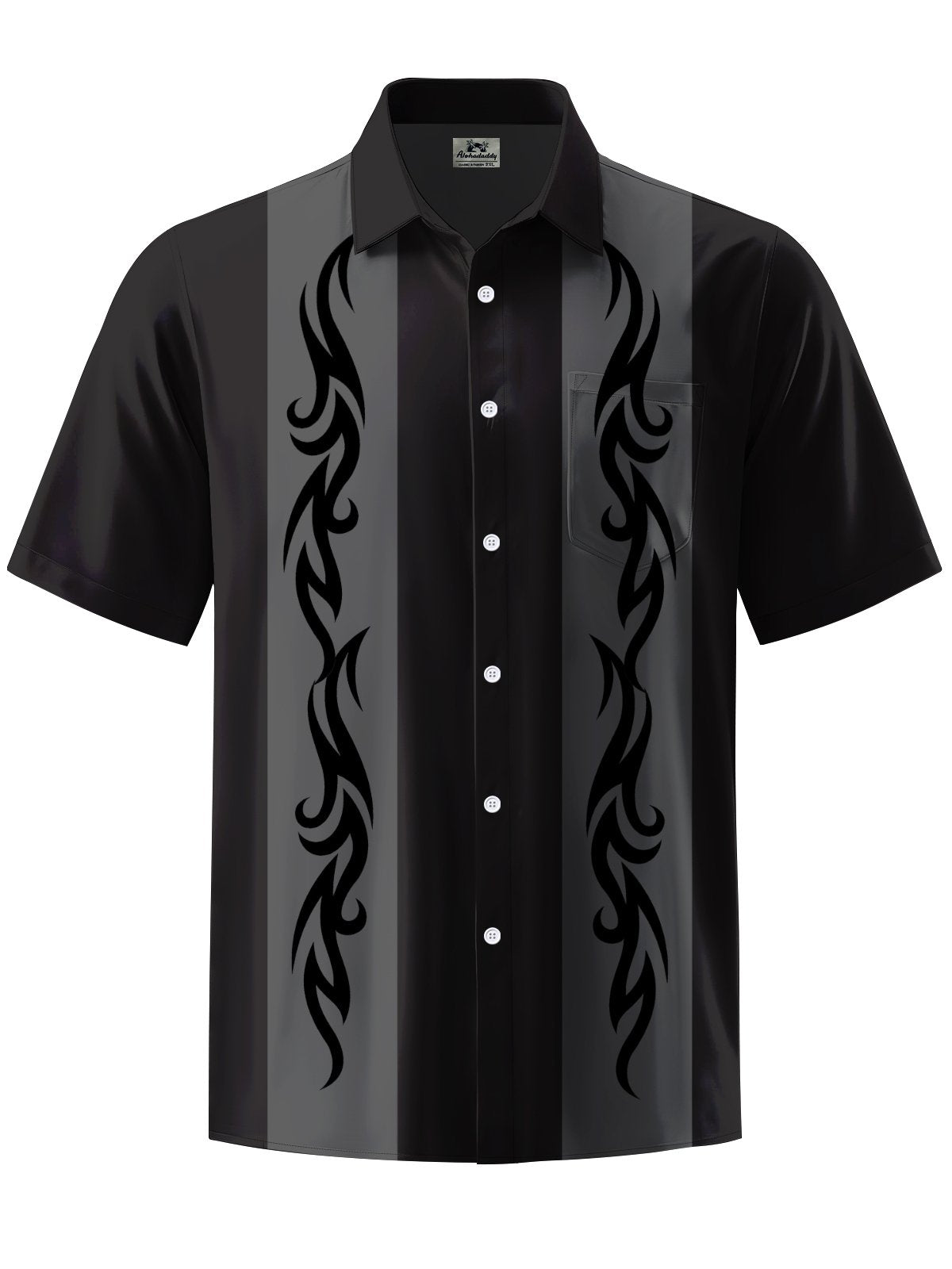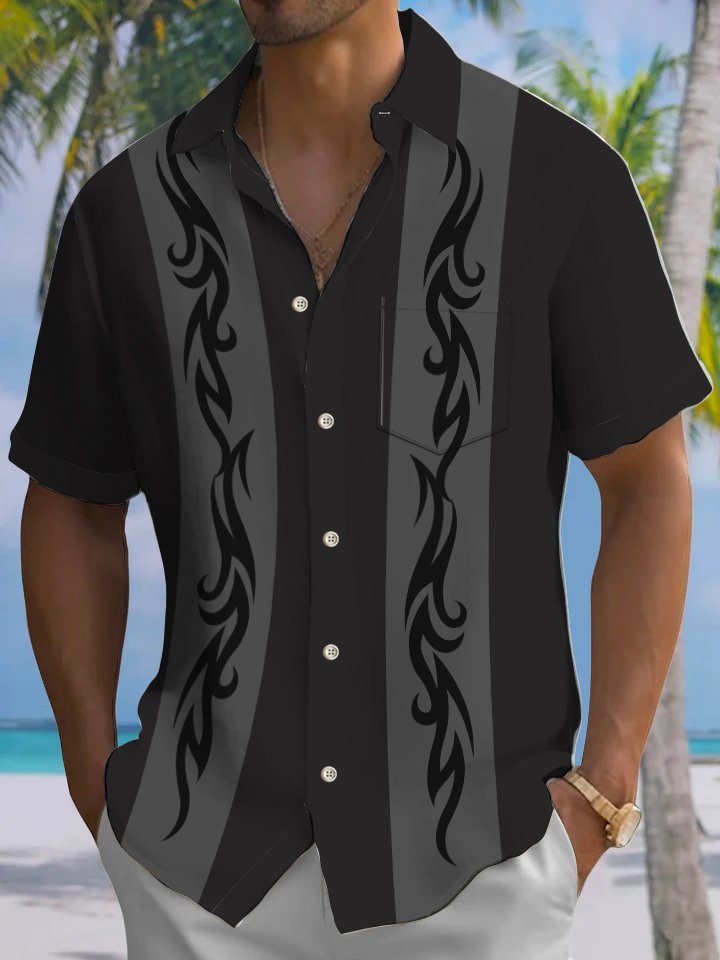 Alohadaddy® Casual Stripe Geometric Art Print Chest Pocket Men's Short Sleeve Shirt Big & Tall