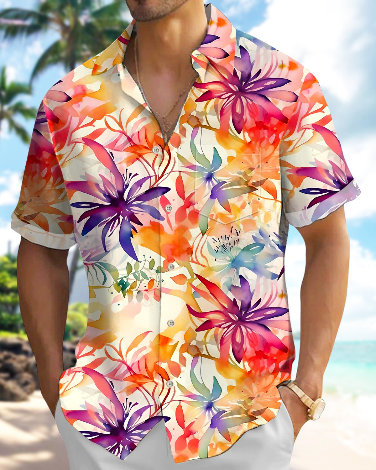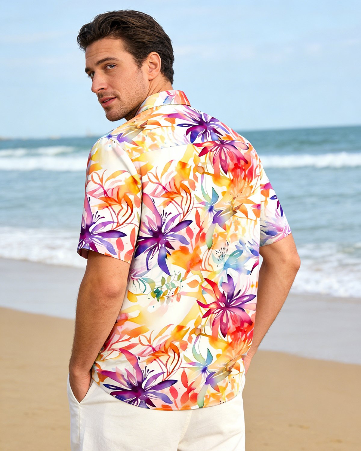 Alohadaddy® Hawaiian Floral Tropical Plant Leaf Gradient Color Vacation Shirt