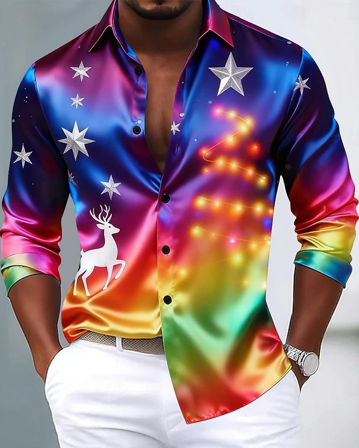Alohadaddy® Holiday Christmas Tree Reindeer Gradient Men's Long-Sleeve Shirt