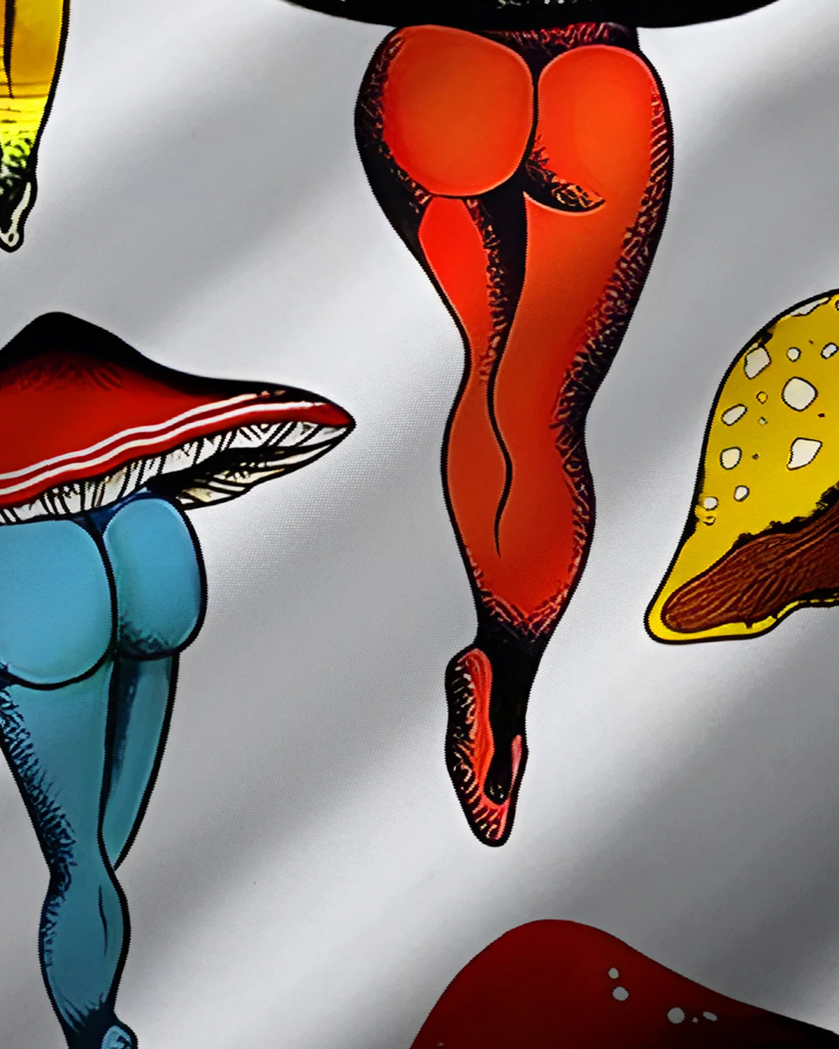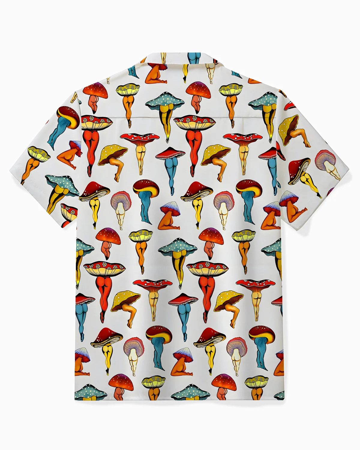 Alohadaddy® Vintage Mushroom Art Print Men's Chest Pocket Stretch Hawaiian Shirt Big Tall
