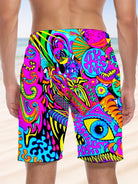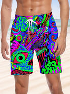 Alohadaddy Abstract Art Fluorescent Color Drawstring Pocket Casual Beach Shorts