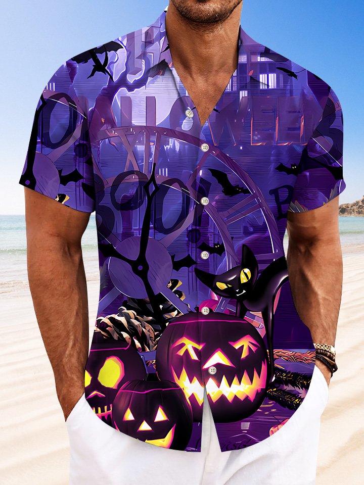 Alohadaddy Halloween Pumpkin Mens Button Down Casual Short Sleeve Shirt