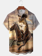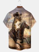 Alohadaddy Hawaii Vacation Dinosaur Denim Print Art Pocket Button Short Sleeve Stretch Large Size Men's Casual Shirt