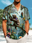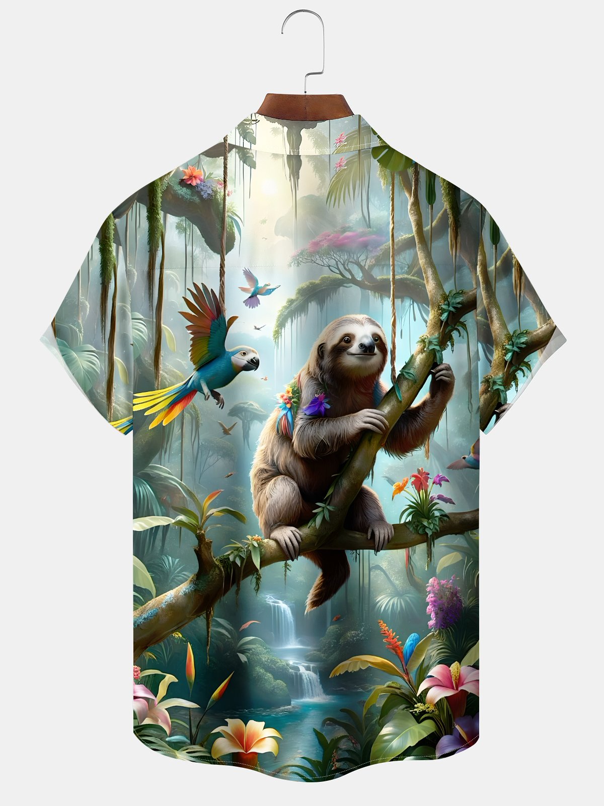 Alohadaddy Hawaiian Sloth Art Print Button Cardigan Pocket Stretch Large Size Long Short Sleeve Shirt