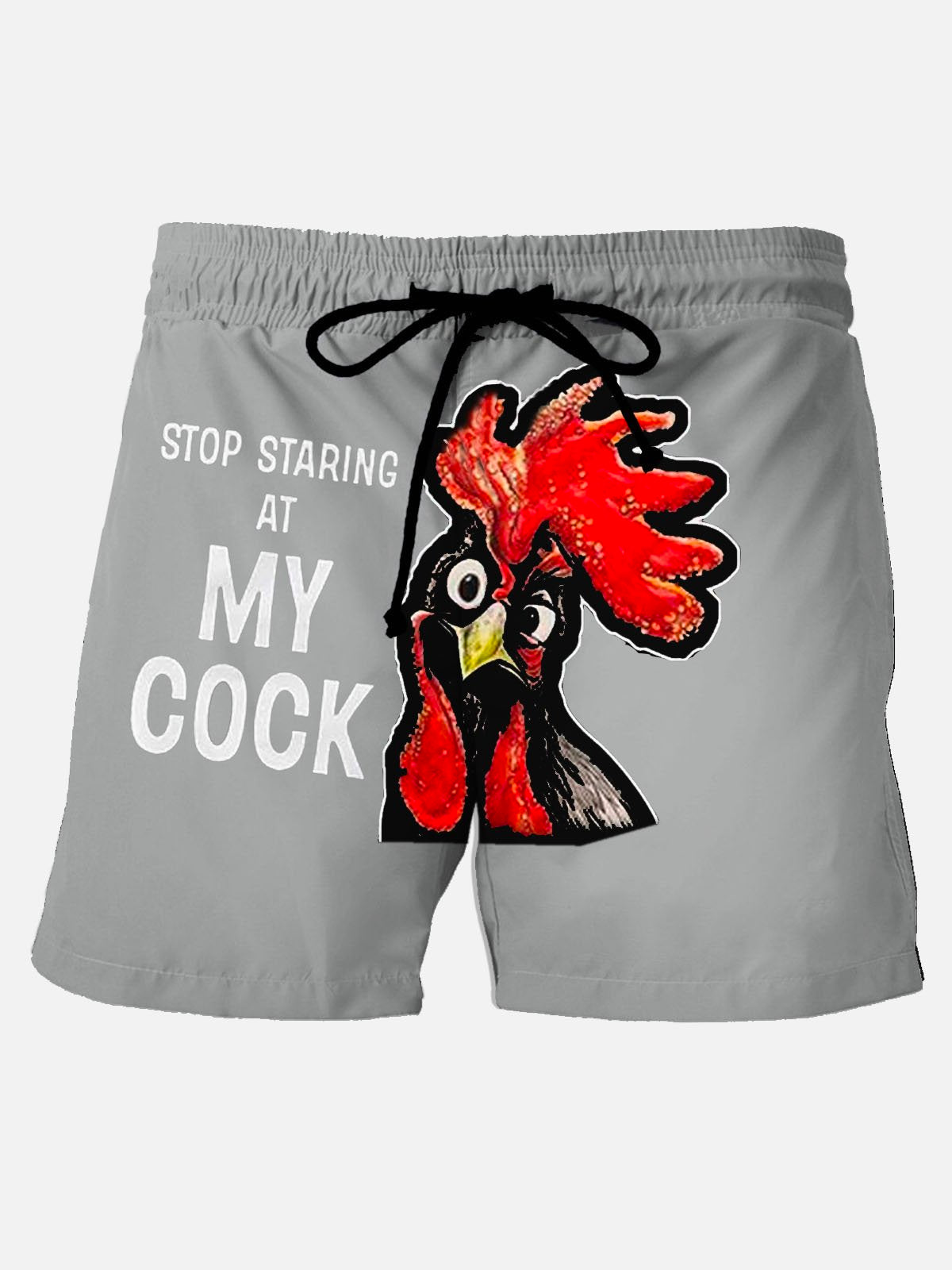 Alohadaddy Men's Rooster Letter Print Wrinkle Free Super Large Board Black Shorts