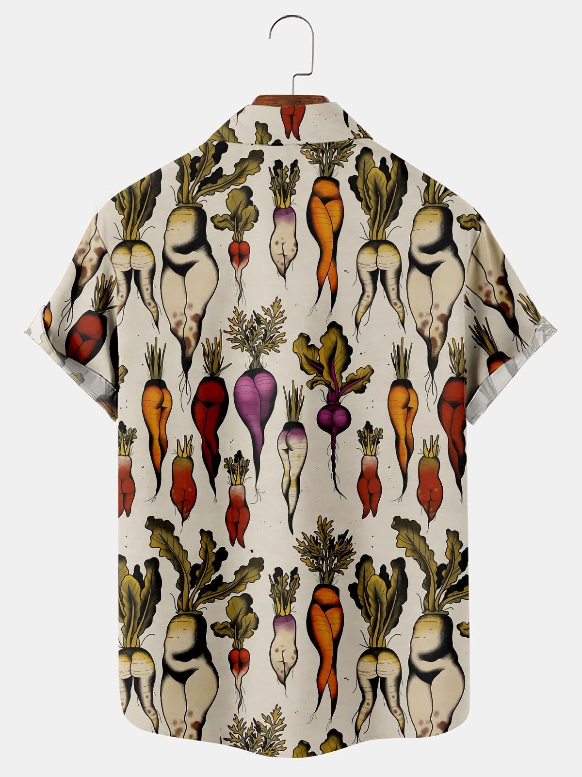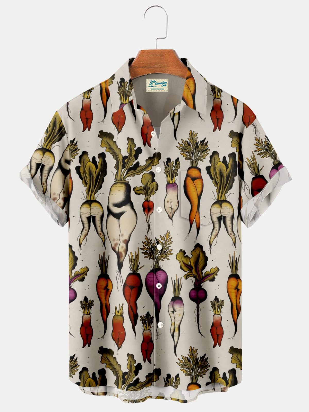Alohadaddy Vintage Fun Fruit and Vegetable Print Men's Button Pocket Shirt