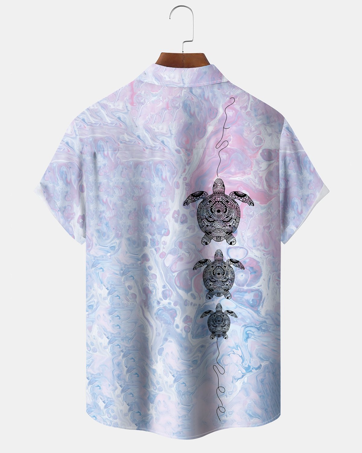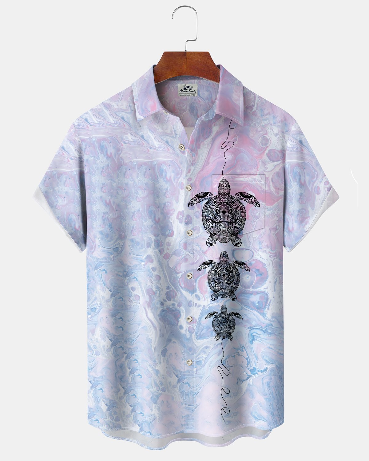 Alohadaddy® Hawaiian Turtle Print Art Button Pocket Cardigan Men's Short Sleeve Shirt Big & Tall