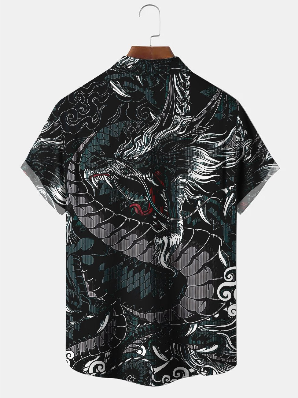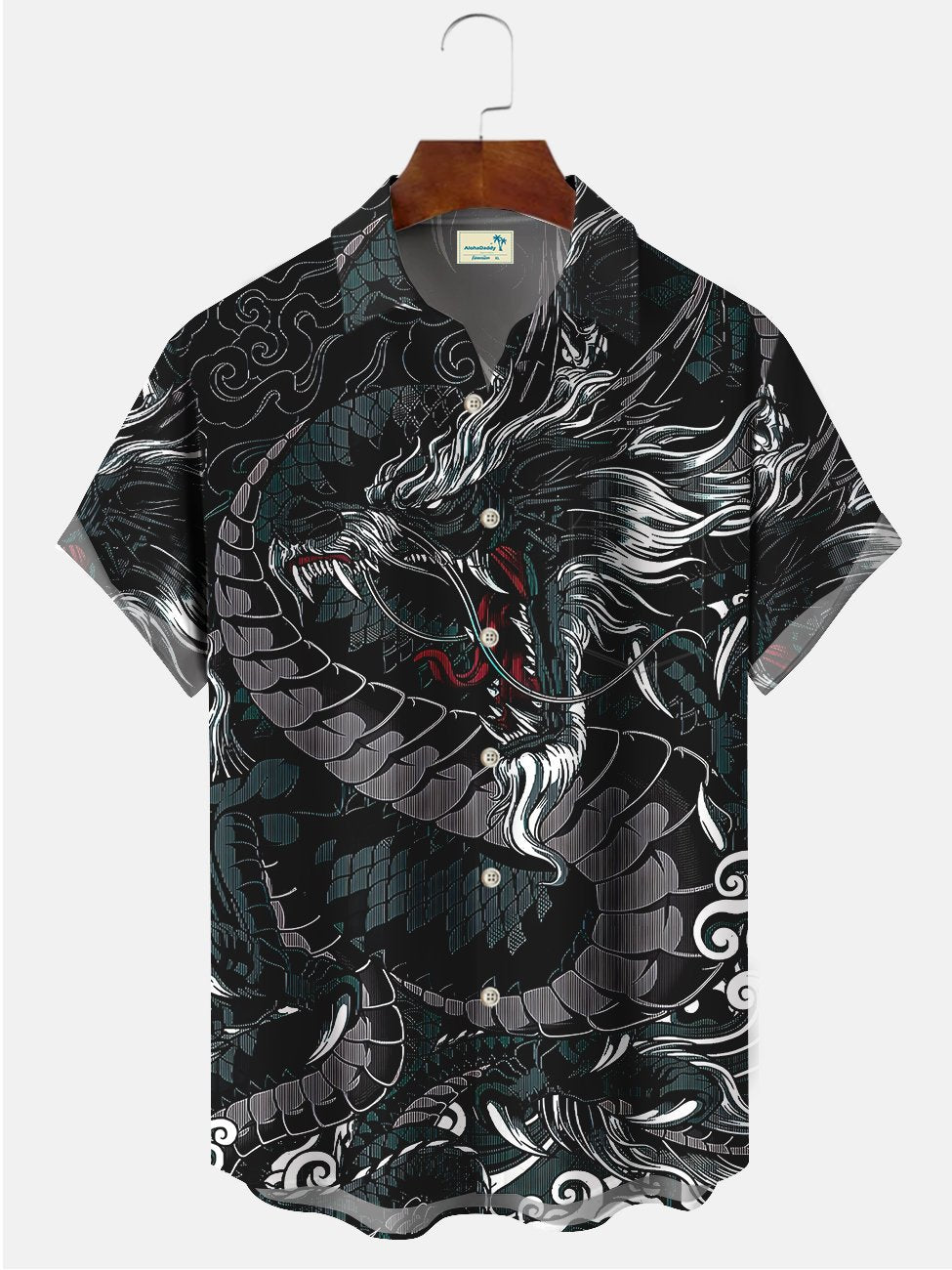 Alohadaddy Eastern Dragon Illustration Printed Casual Plus Size Shirts