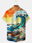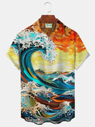 Alohadaddy Wave Art Print Beach Men's Hawaiian Oversized Short Sleeve Shirt with Pockets
