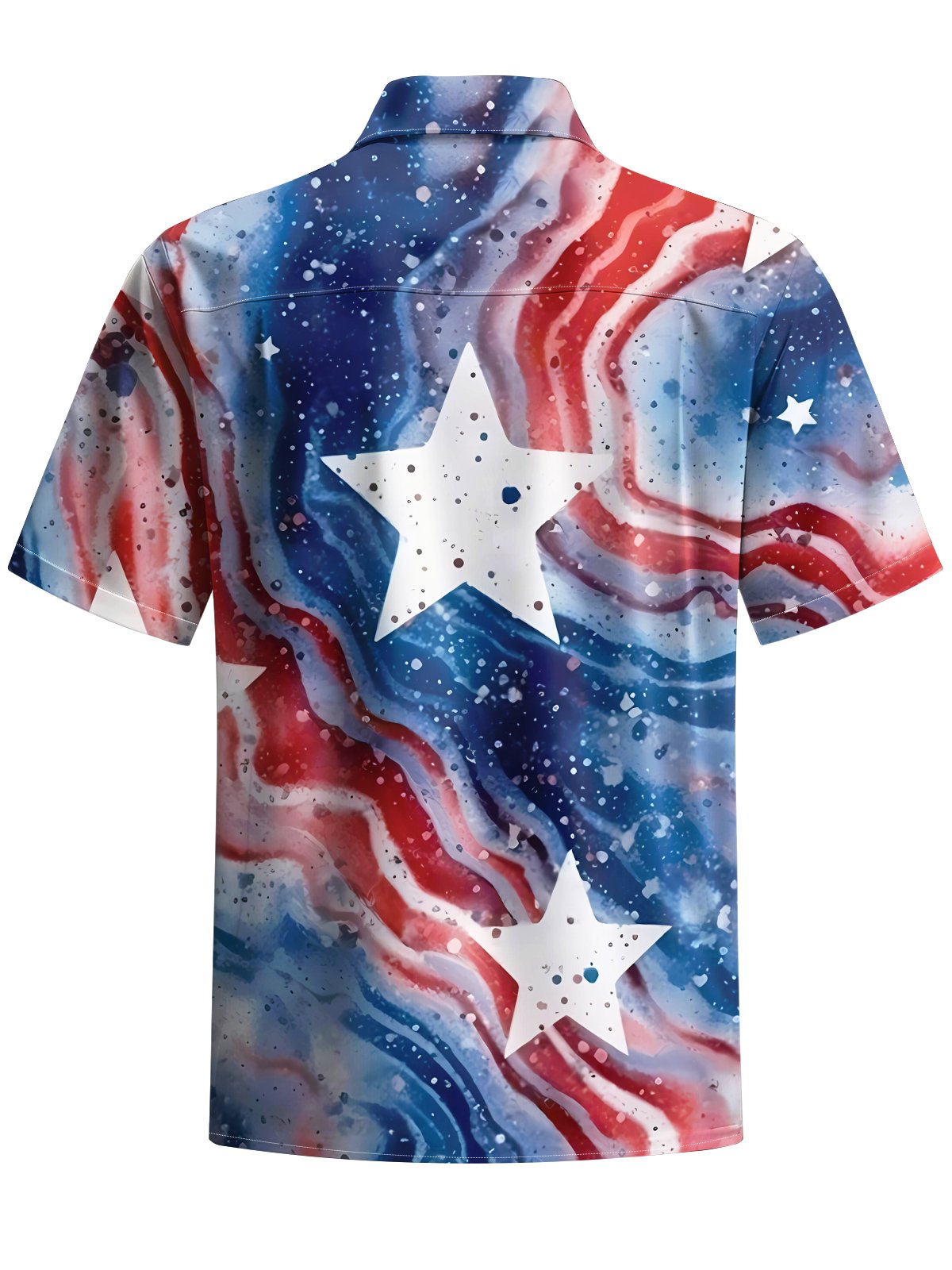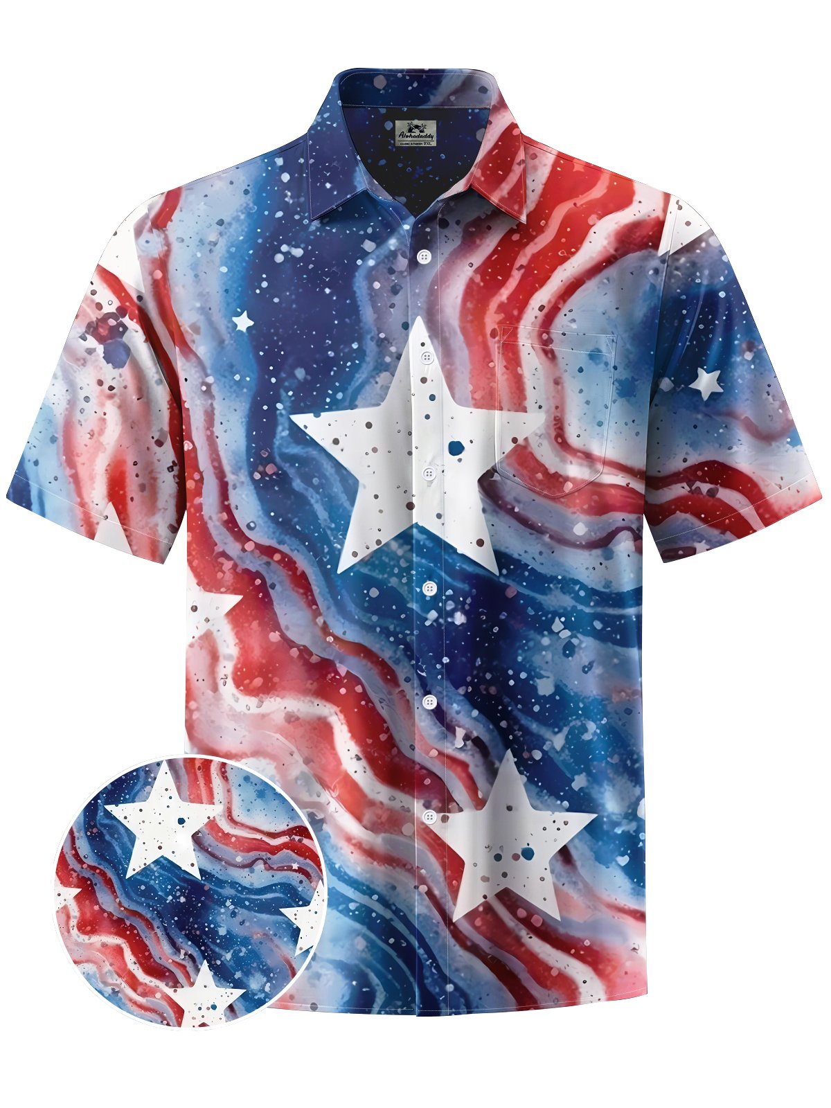 Alohadaddy® Casual American Star Print Art Moisture Wicking Men's Short Sleeve Shirt Big & Tall