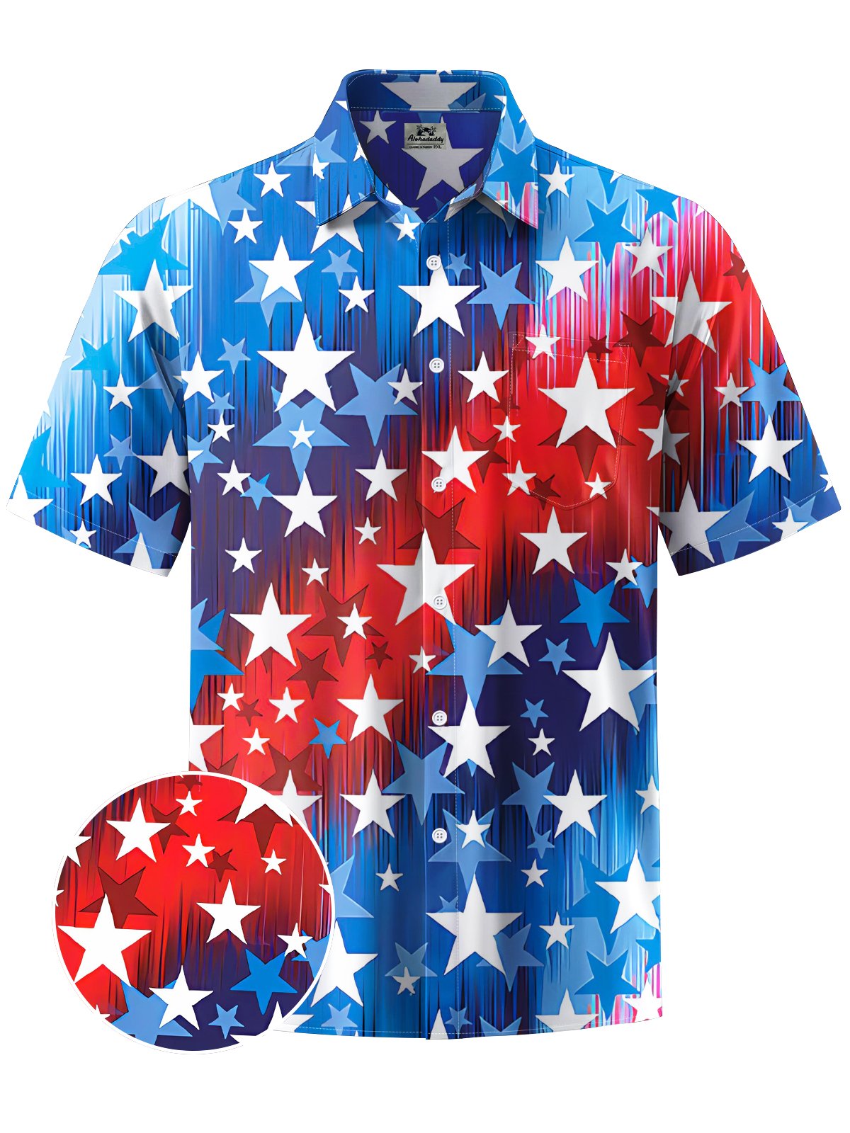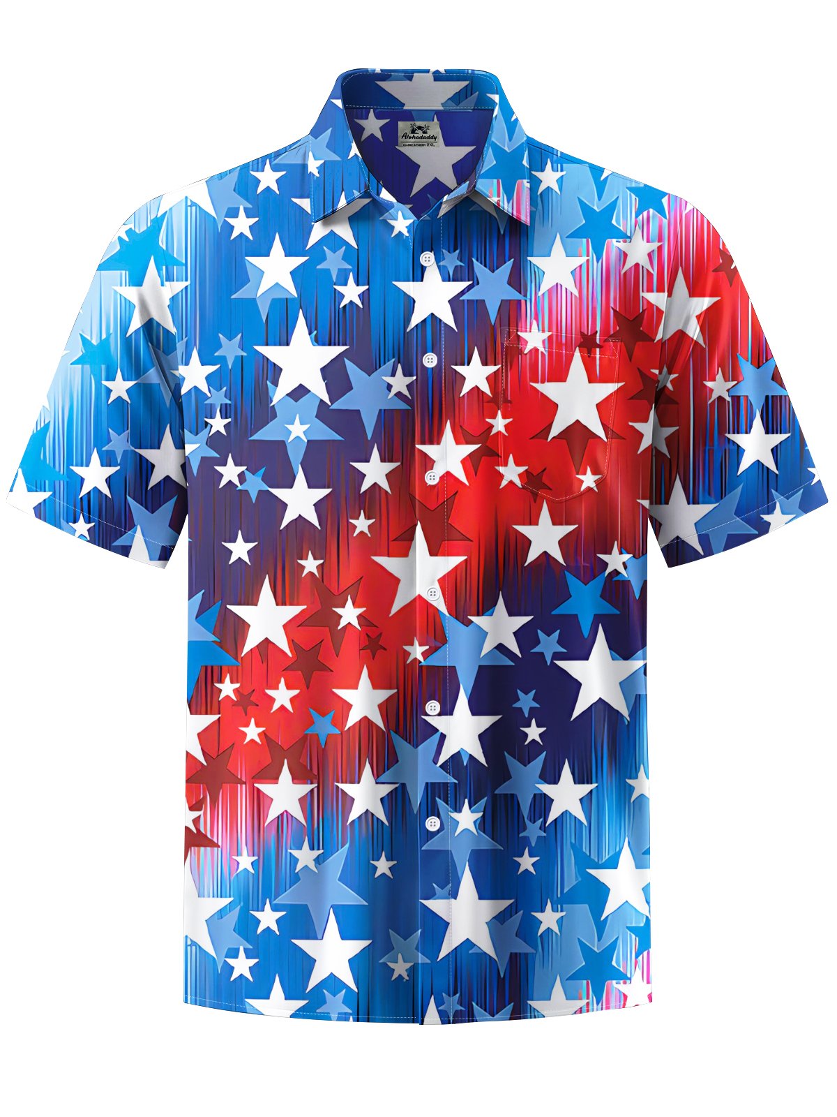 Alohadaddy® Holiday American Flag Day Print Art Chest Pocket Mens Short Sleeve Shirts Big & Tall