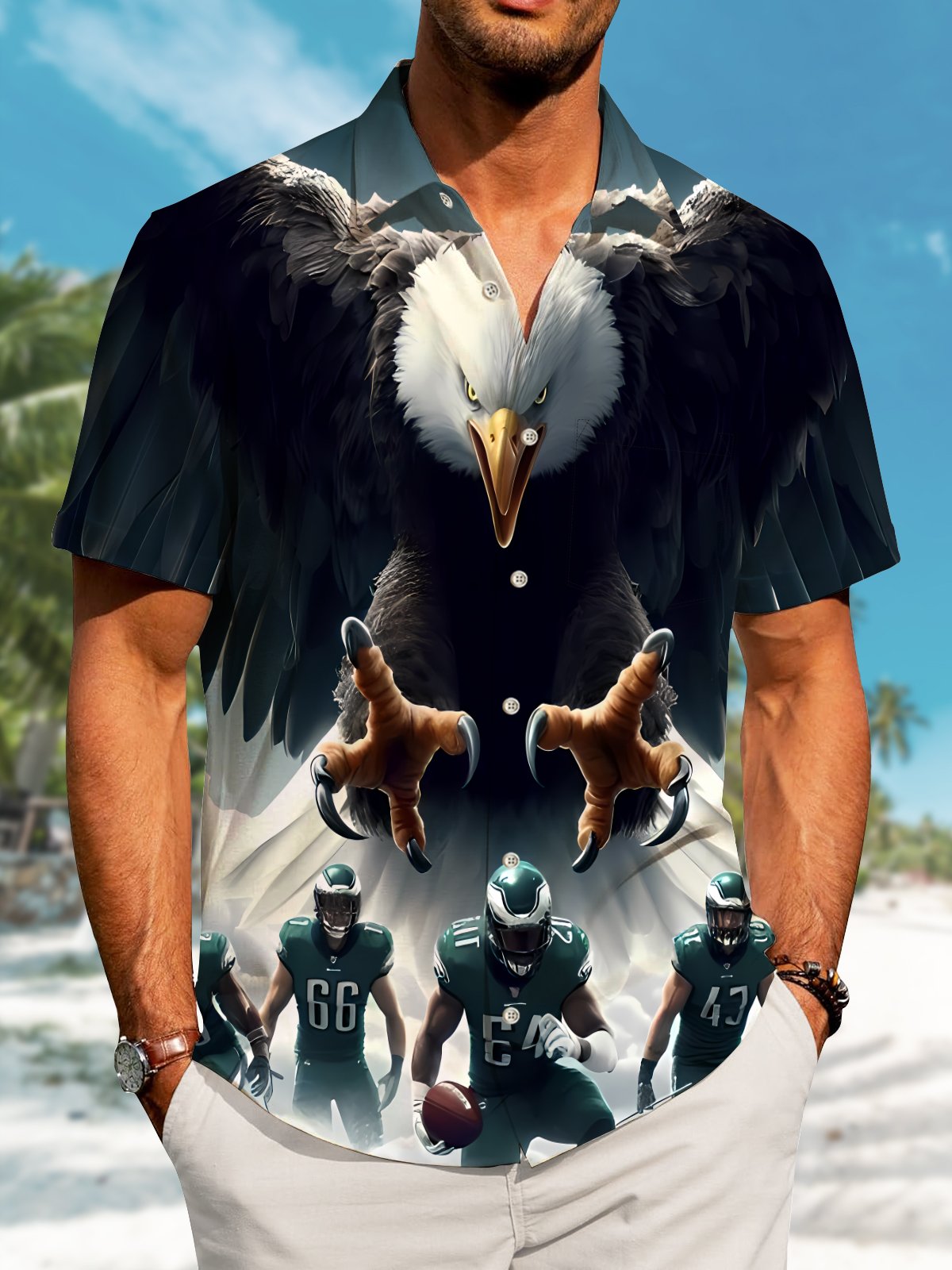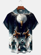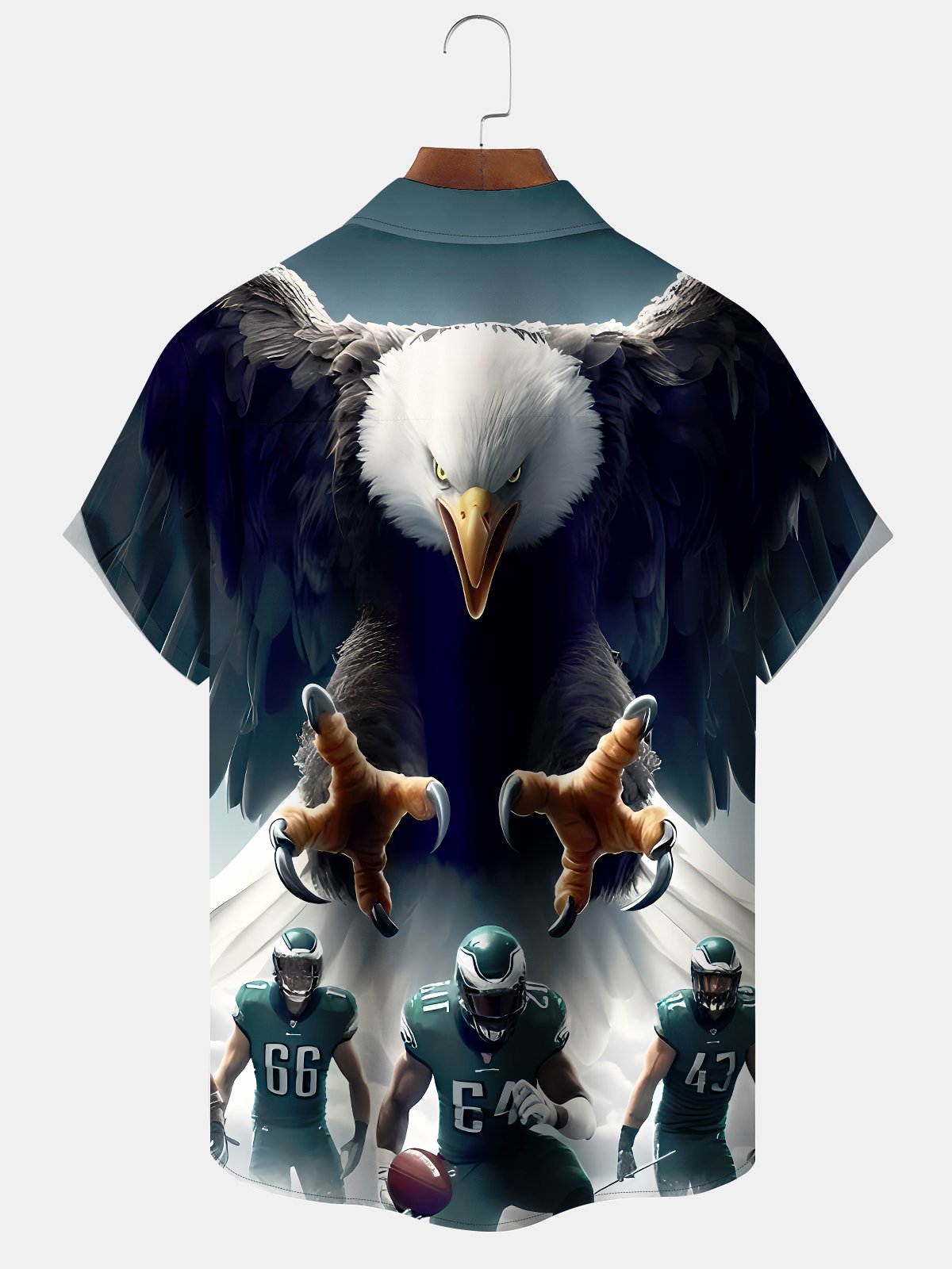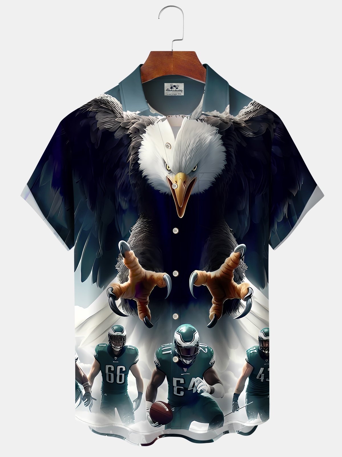 Alohadaddy Casual Eagles Football Team Printed Art Pockets Buttons Stretch Oversized Shirt