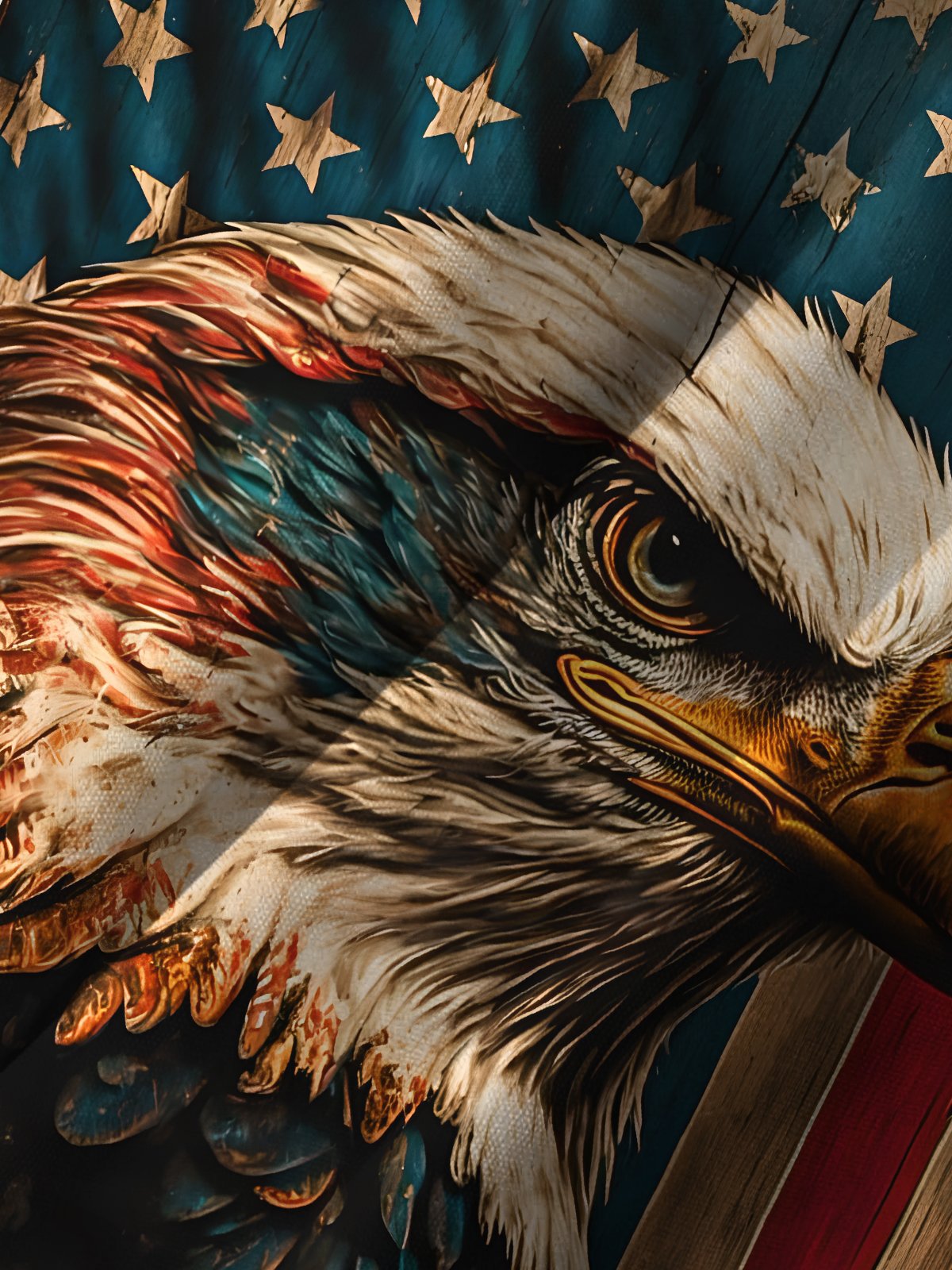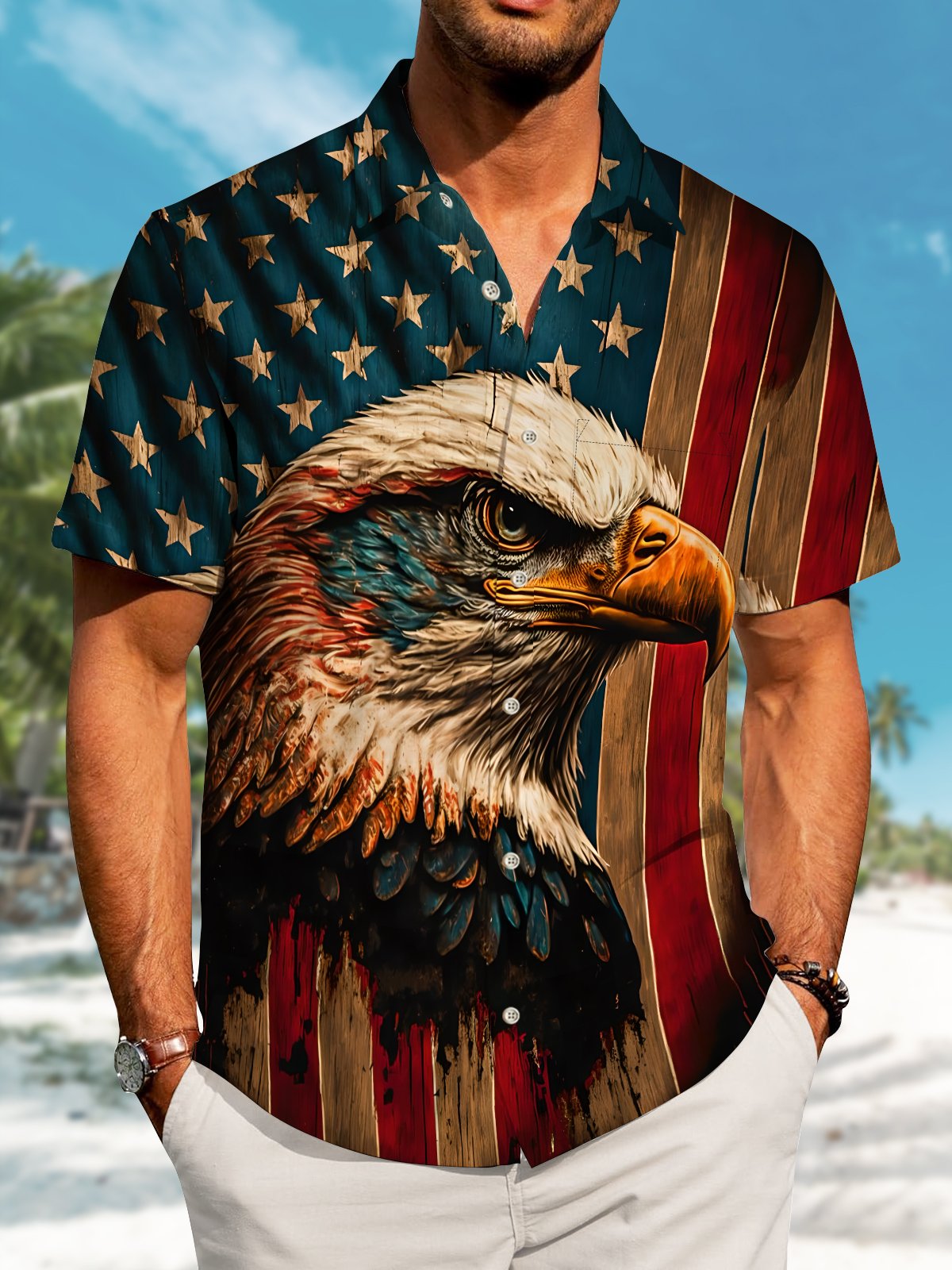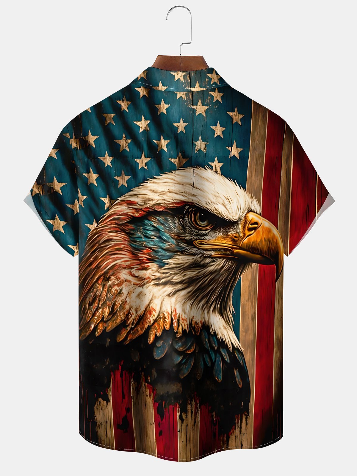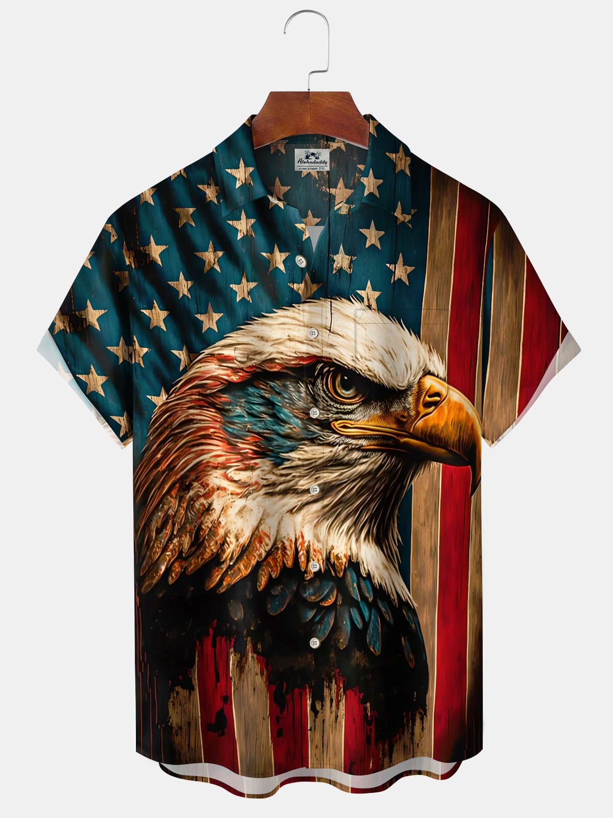 Alohadaddy Casual Independence Day American Flag Eagle Drawing Art Button Cardigan Pocket Stretch Large Size Long Short Sleeve Shirt