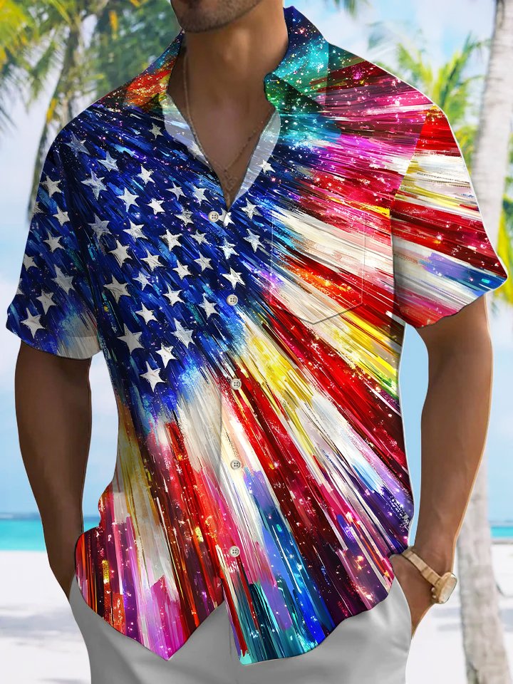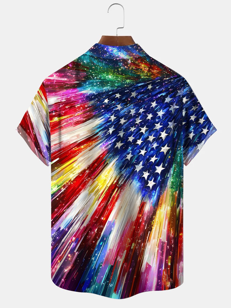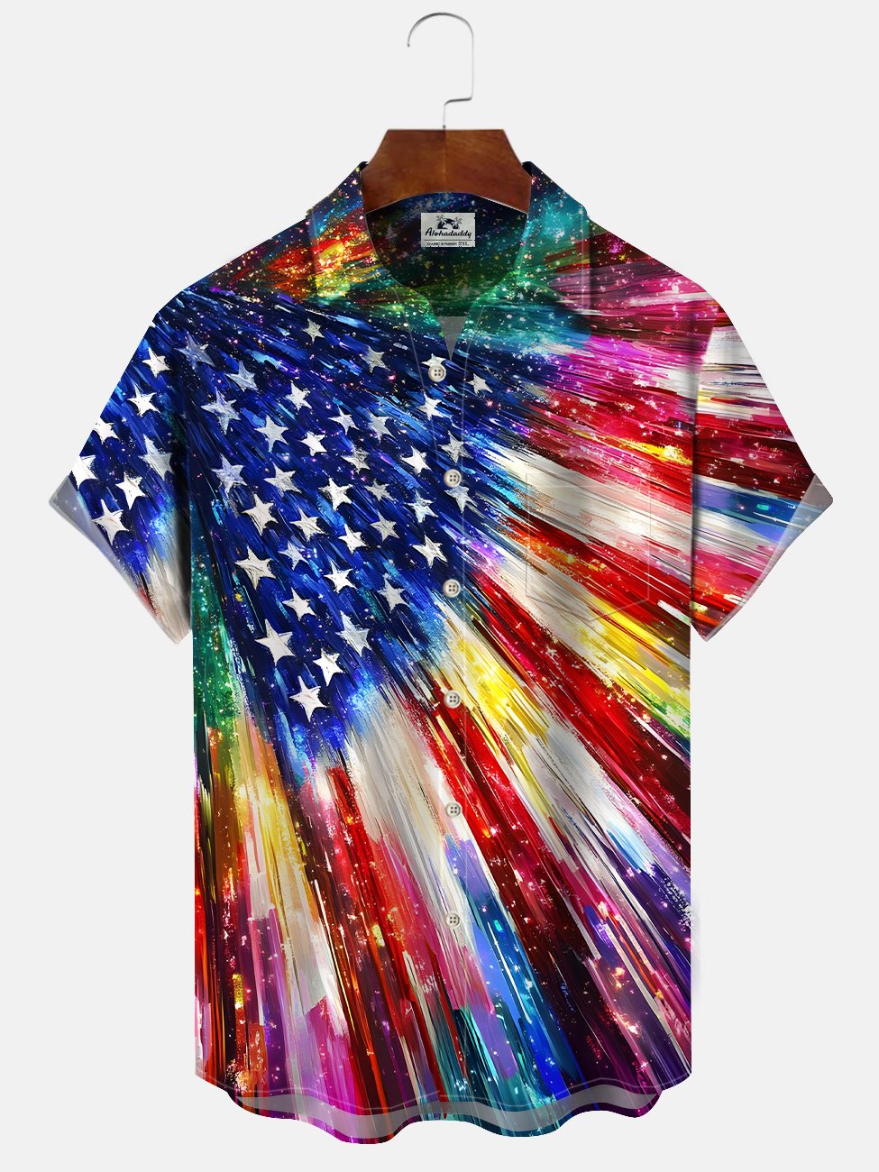 Alohadaddy Flag Button Pocket Casual Short Sleeve Shirt