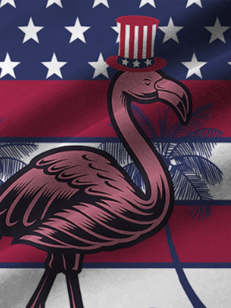 Alohadaddy Flamingo Flag Print Beach Men's Hawaiian Oversized Shirt with Pockets