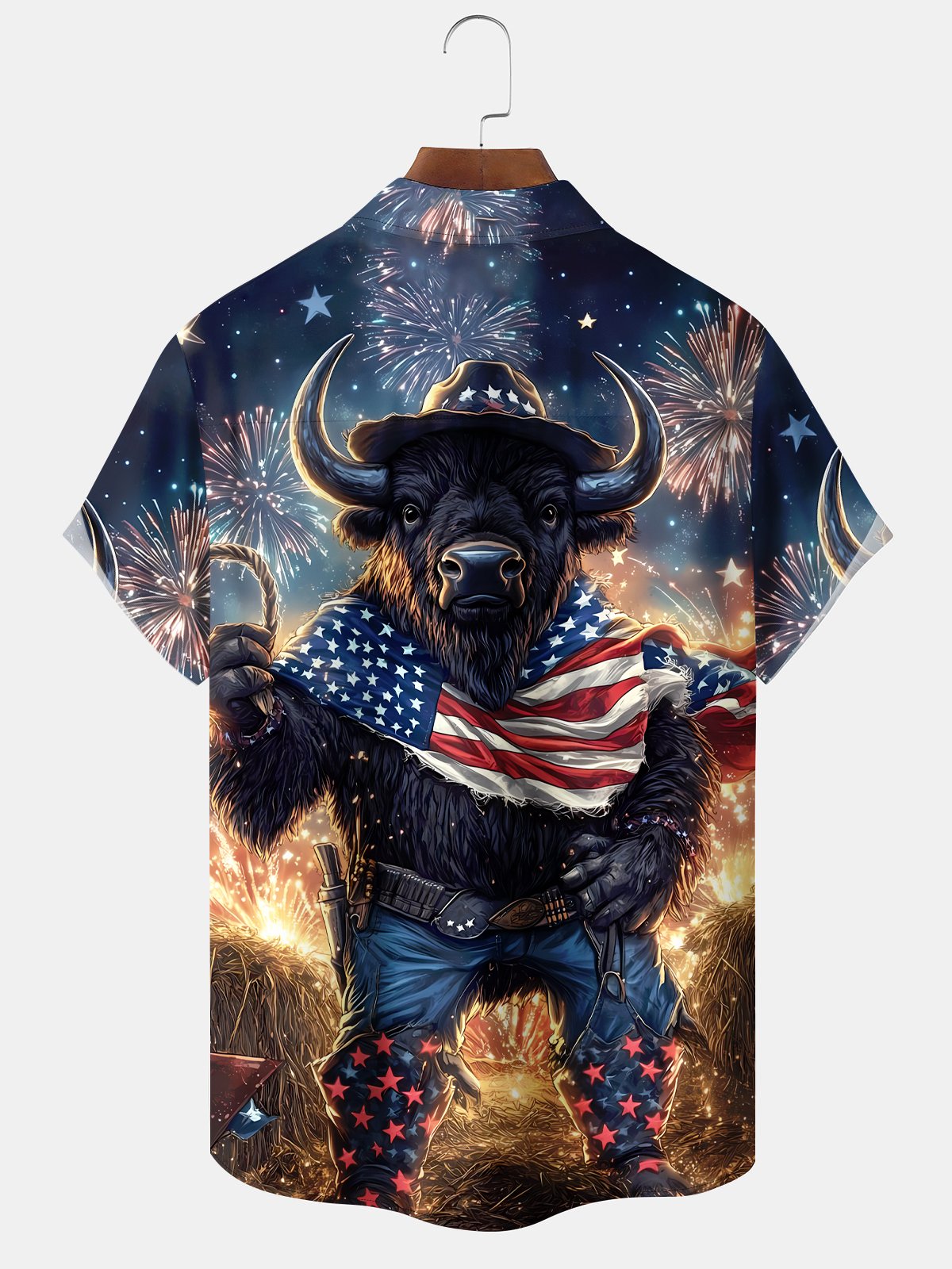 Alohadaddy Holiday American Flag Bison Independence Day Fireworks Shirt