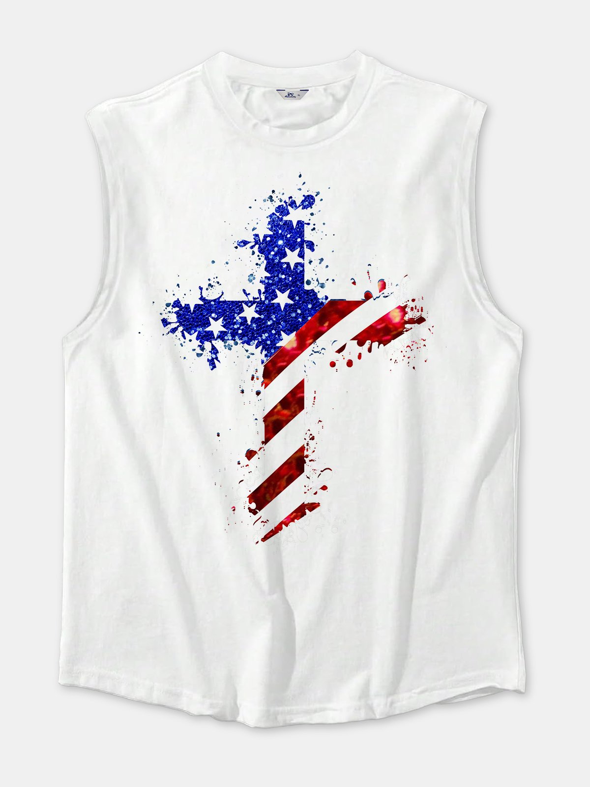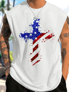 Alohadaddy Holiday American Flag Cross Independence Day Sleeveless Sport Tank Top