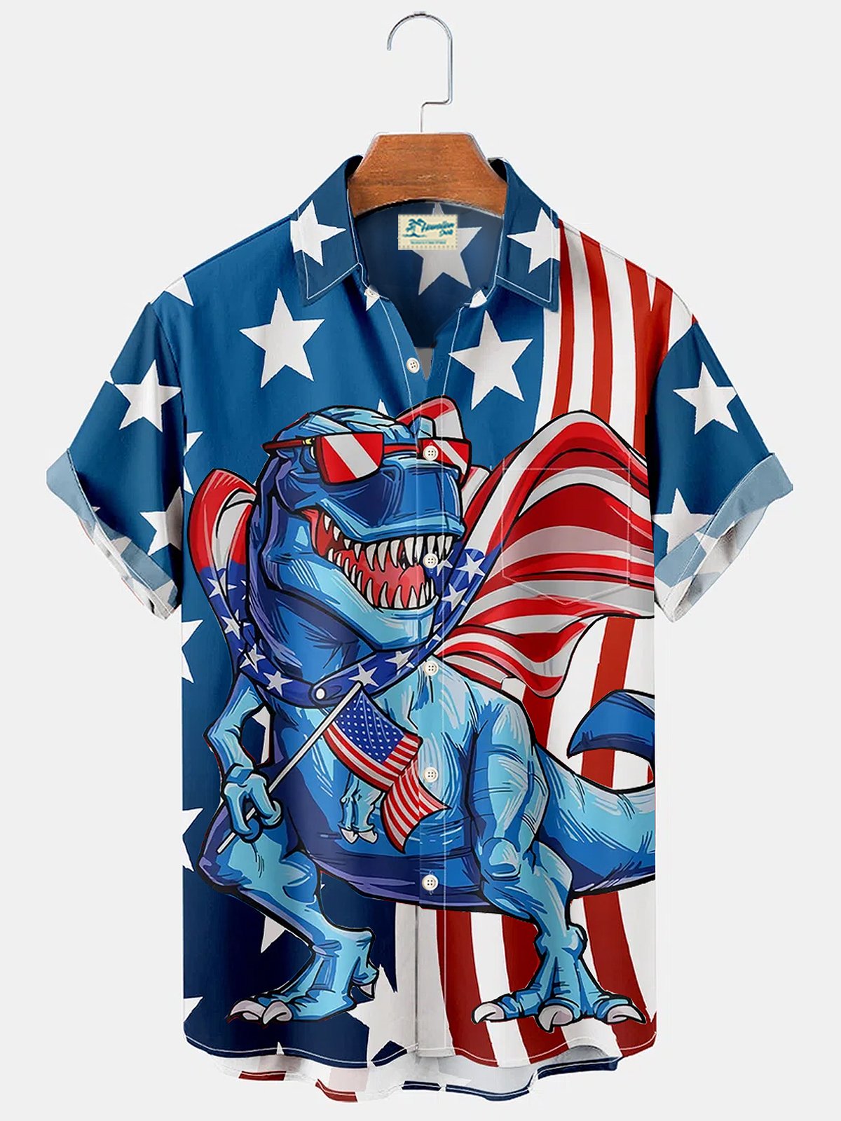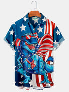 Alohadaddy Holiday American Flag Dinosaur Men's Button Down Pocket Shirt