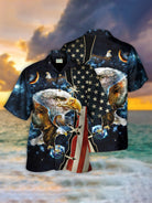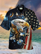 Alohadaddy Holiday American Flag Eagle Blue Men's Hawaiian Shirts Stretch Oversized Aloha Camp Collar Shirts