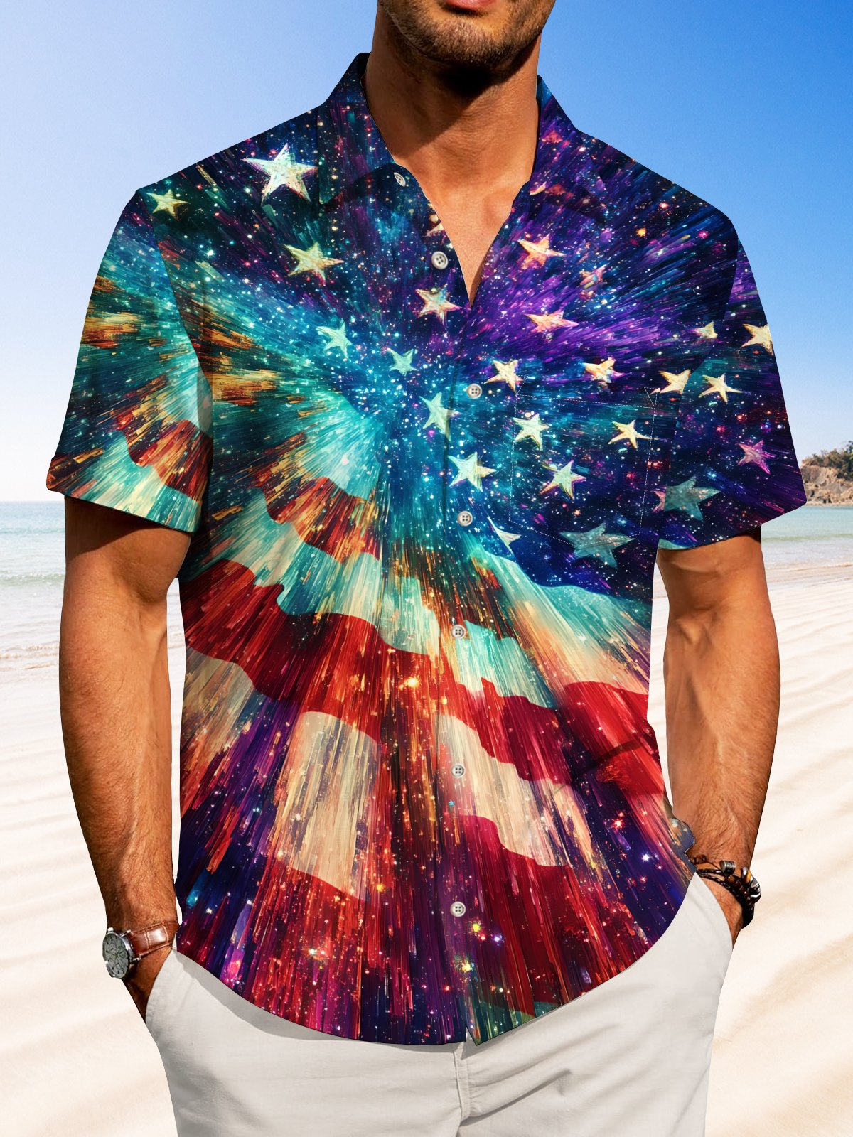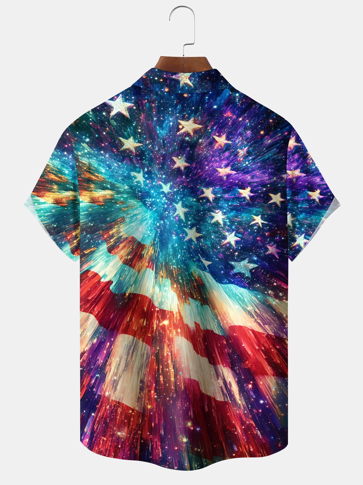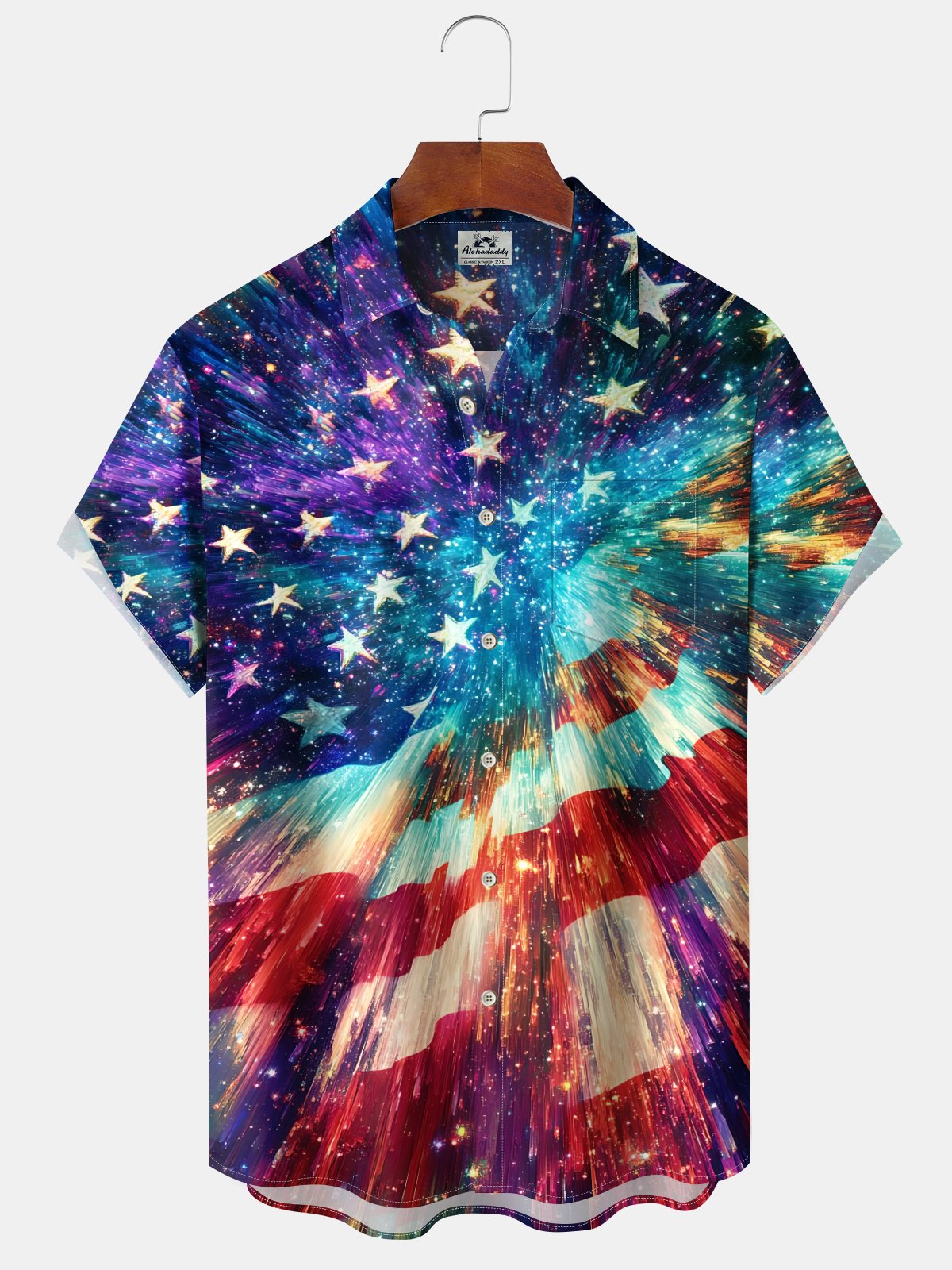 Alohadaddy Holiday Collection Independence Day American Flag Button Cardigan Pocket Stretch Large Size Long Short Sleeve Shirt