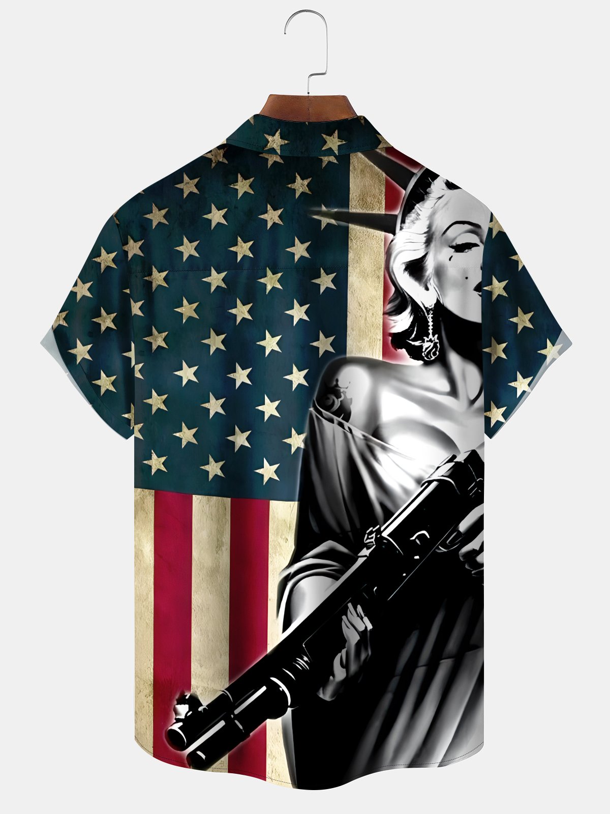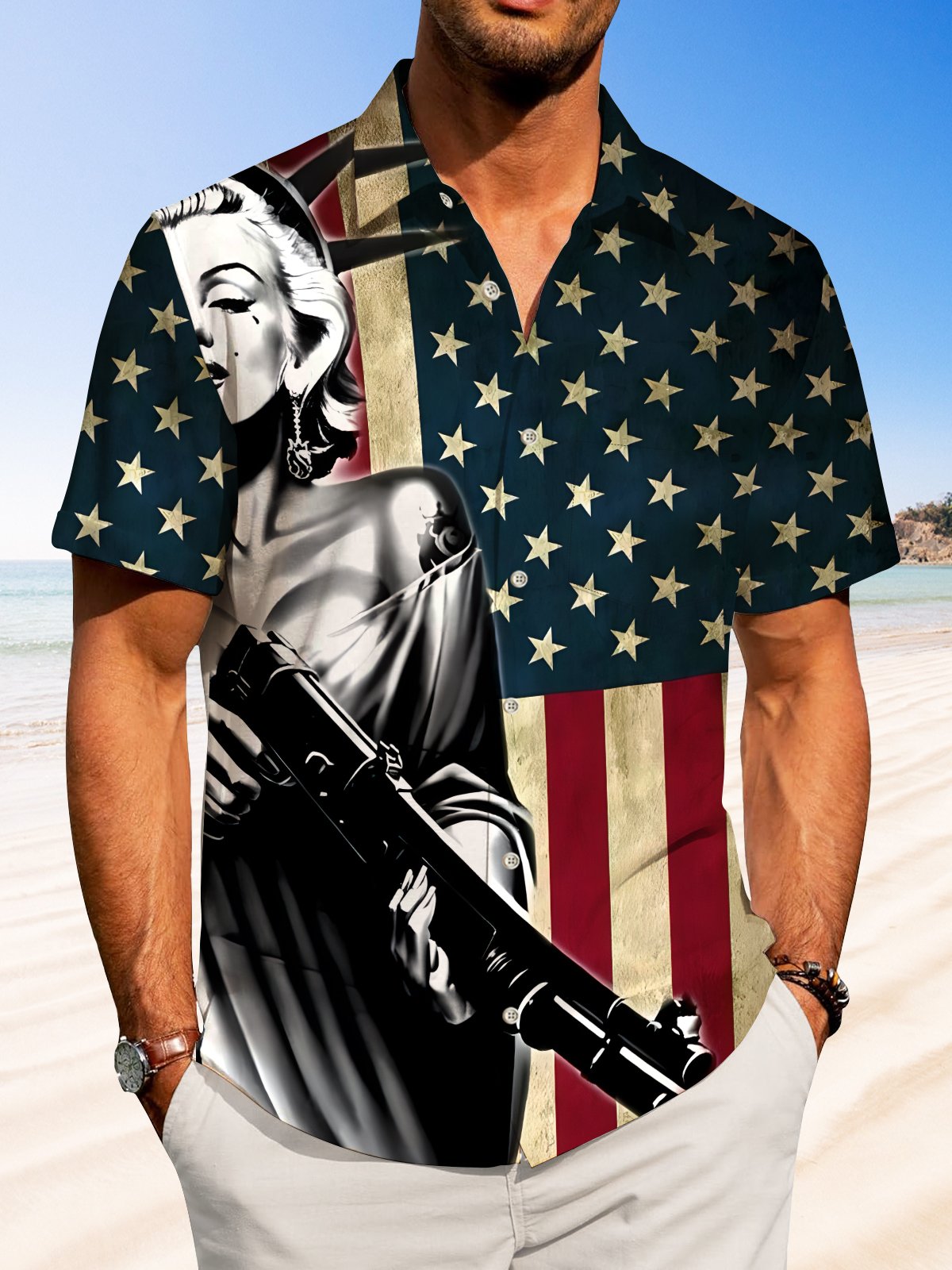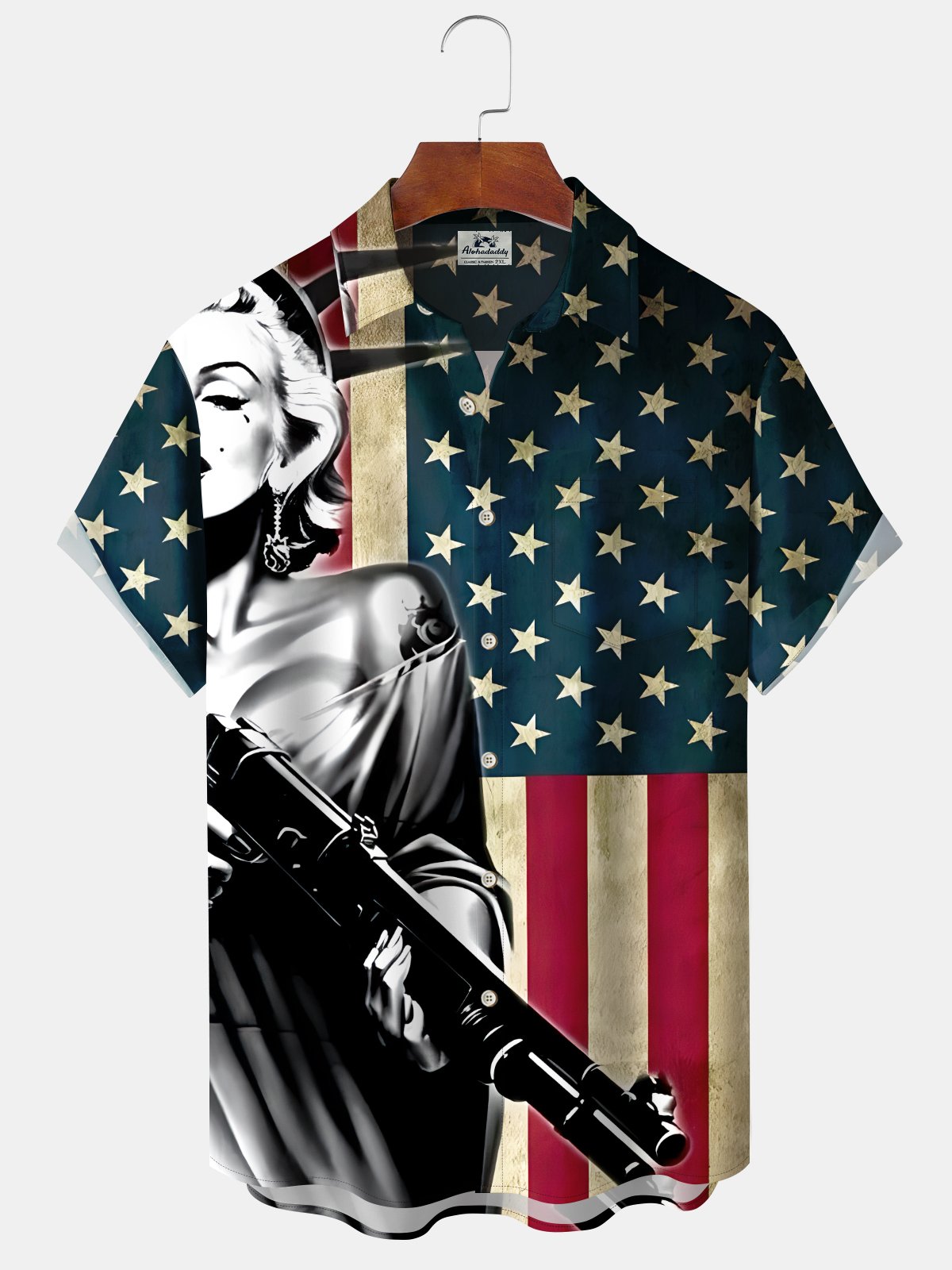 Alohadaddy Holiday Collection Independence Day American Flag Print Art Button Cardigan Pockets Stretch Large Size Long Short Sleeve Shirt