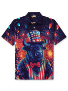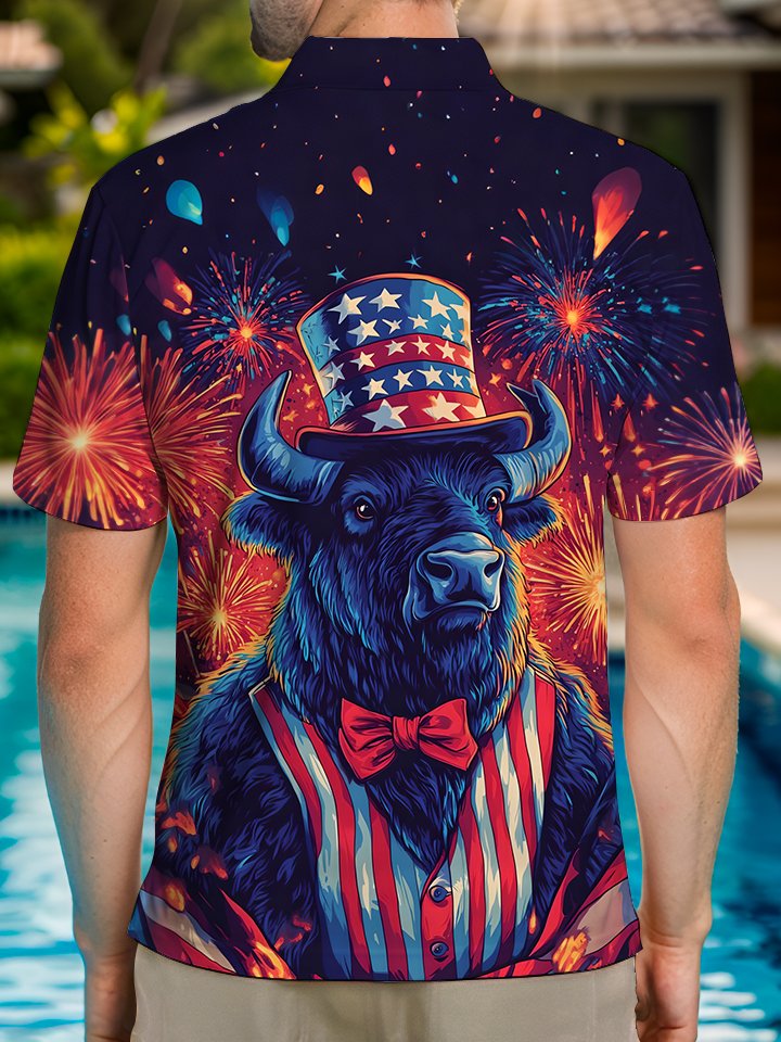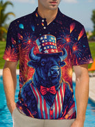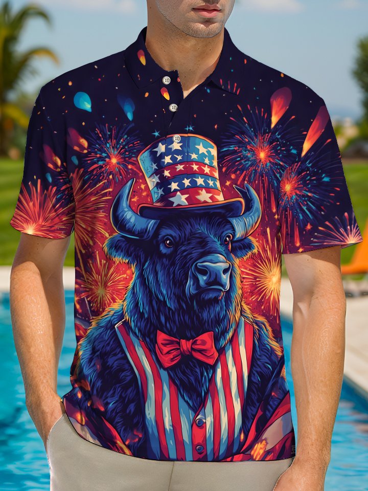 Alohadaddy Holiday Collection Independence Day Bull Button Stretch Oversized Polyester Short Sleeve Polo Shirt