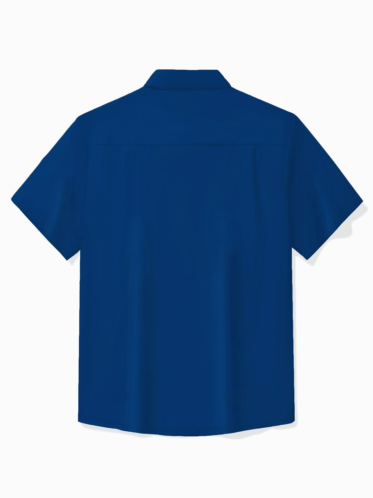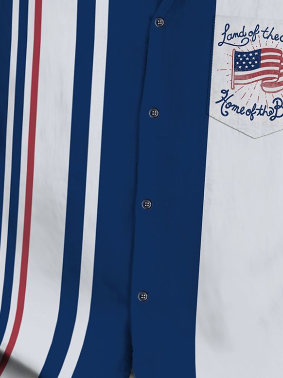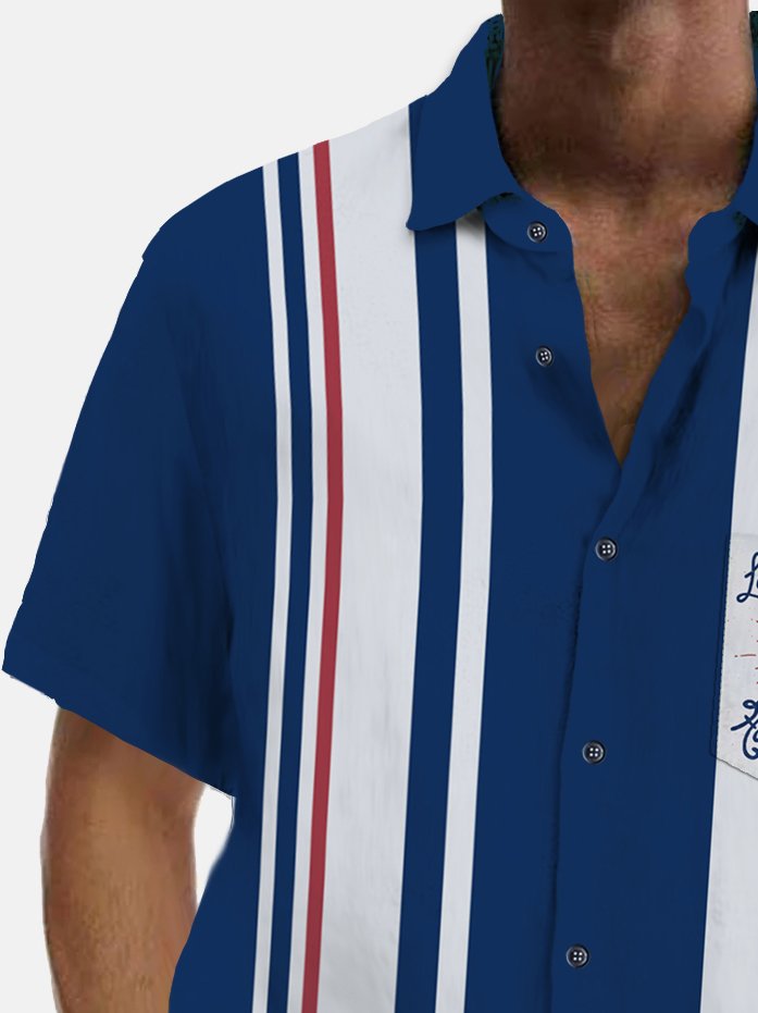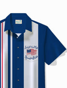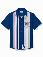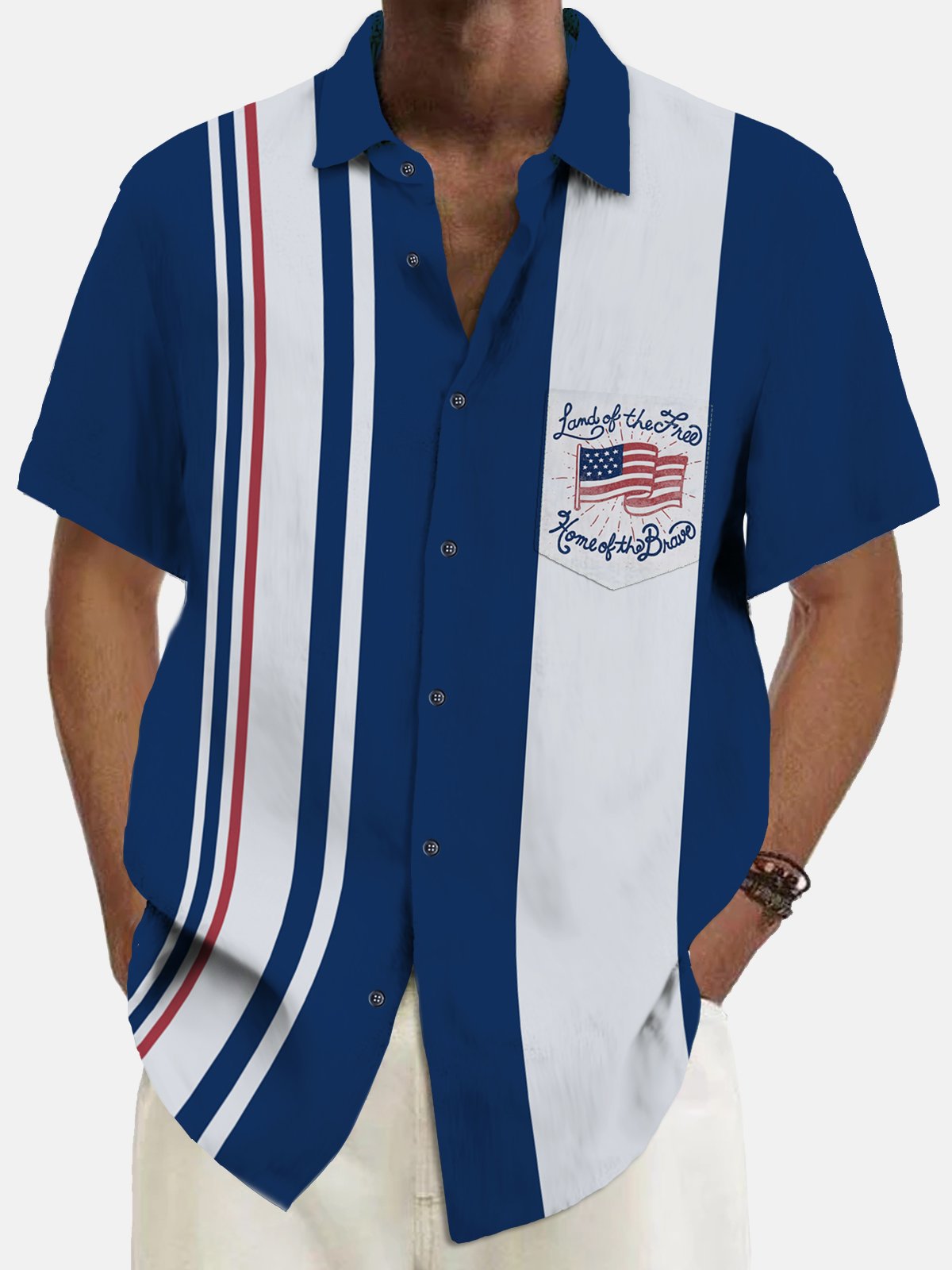 Alohadaddy Holiday Memorial Day Men's American Flag Soldier Print Bowling Shirt Easy Care Camping Pocket Shirt Big Tall