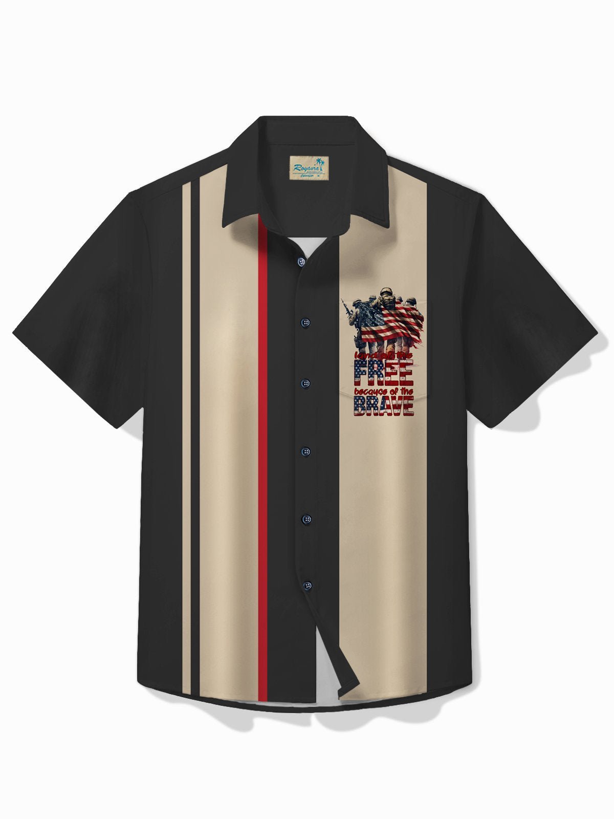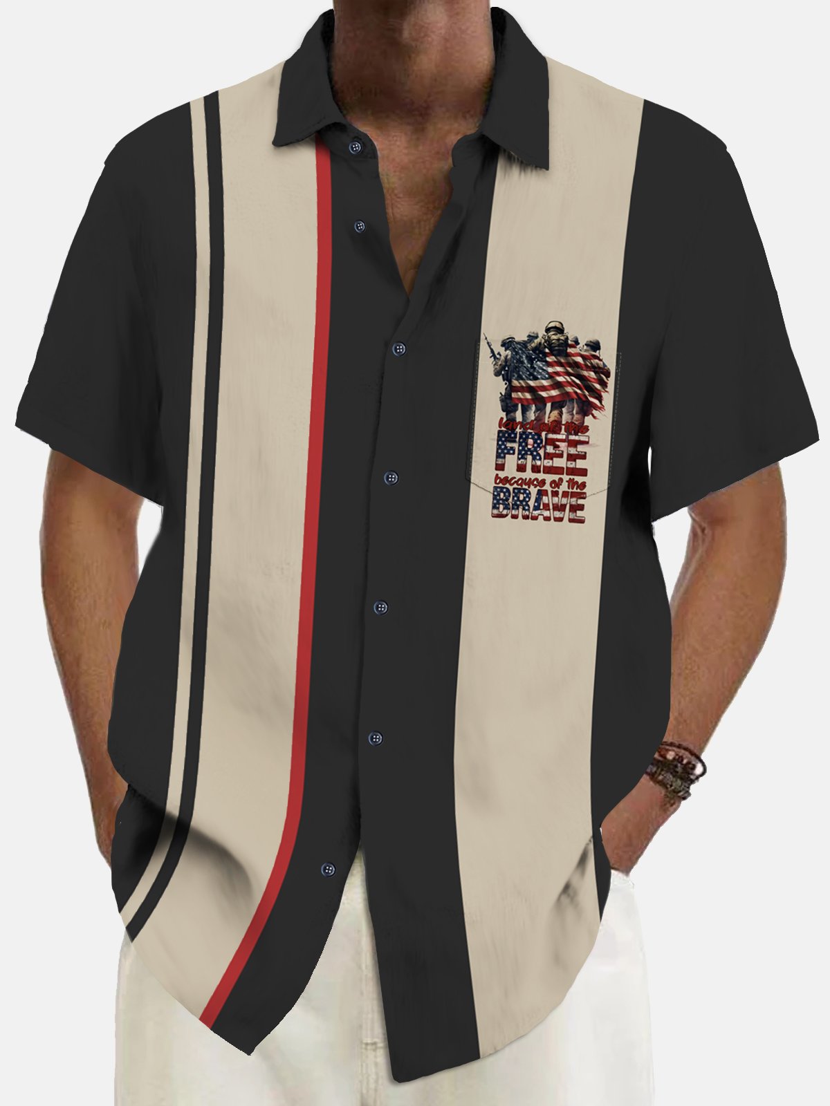 Alohadaddy Holiday Memorial Day Soldier American Flag Print Men's Shirt Easy Care Camping Pocket Shirt Big Tall