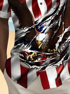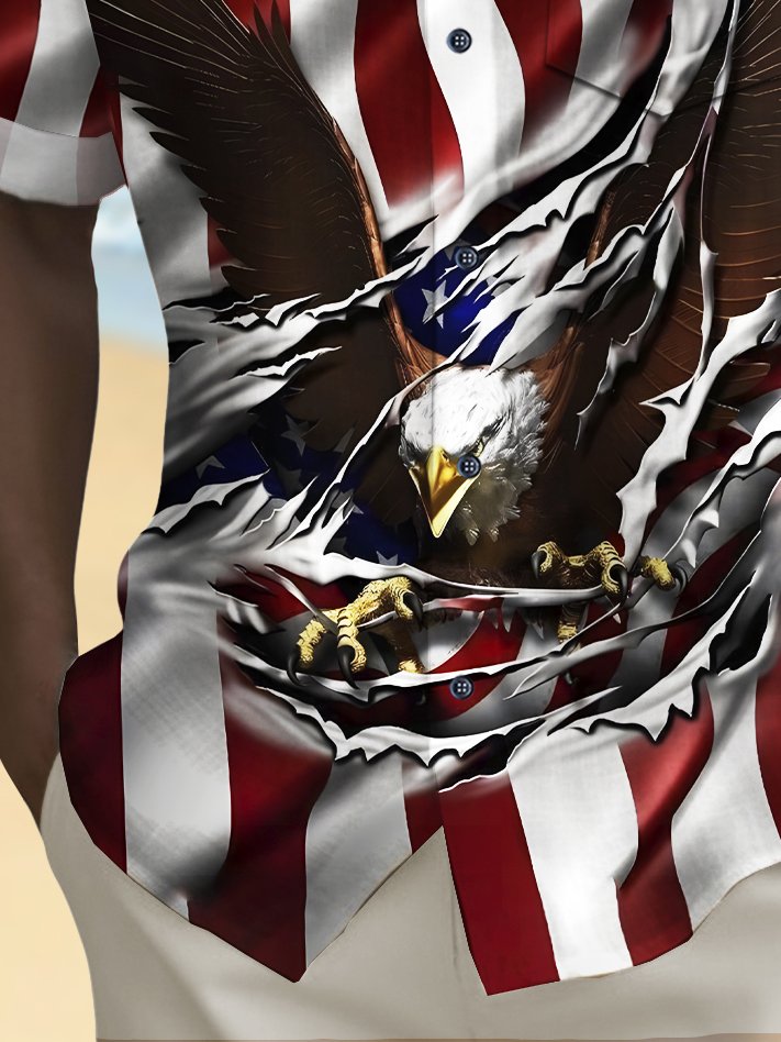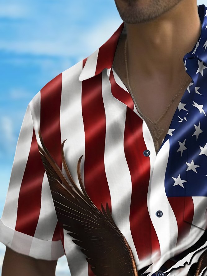 Alohadaddy Holiday Men's Independence Day Flag Eagle Print Casual Breathable Short Sleeve Shirt Big Tall