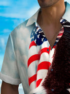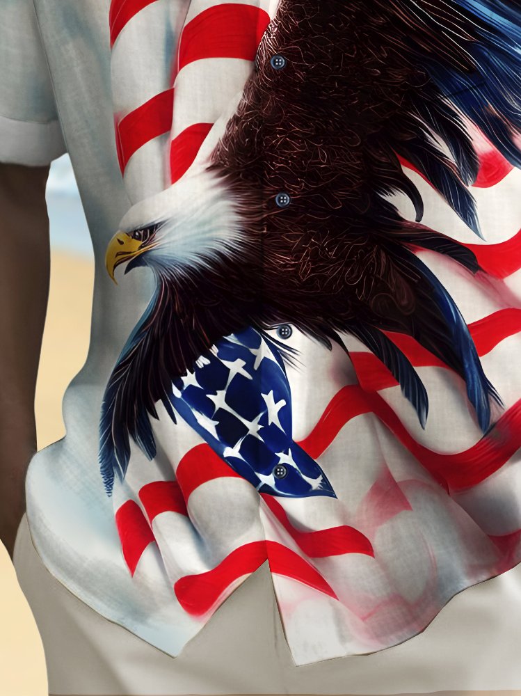 Alohadaddy Holiday Men's Independence Day Flag Eagle Print Casual Breathable Short Sleeve Shirt Big Tall