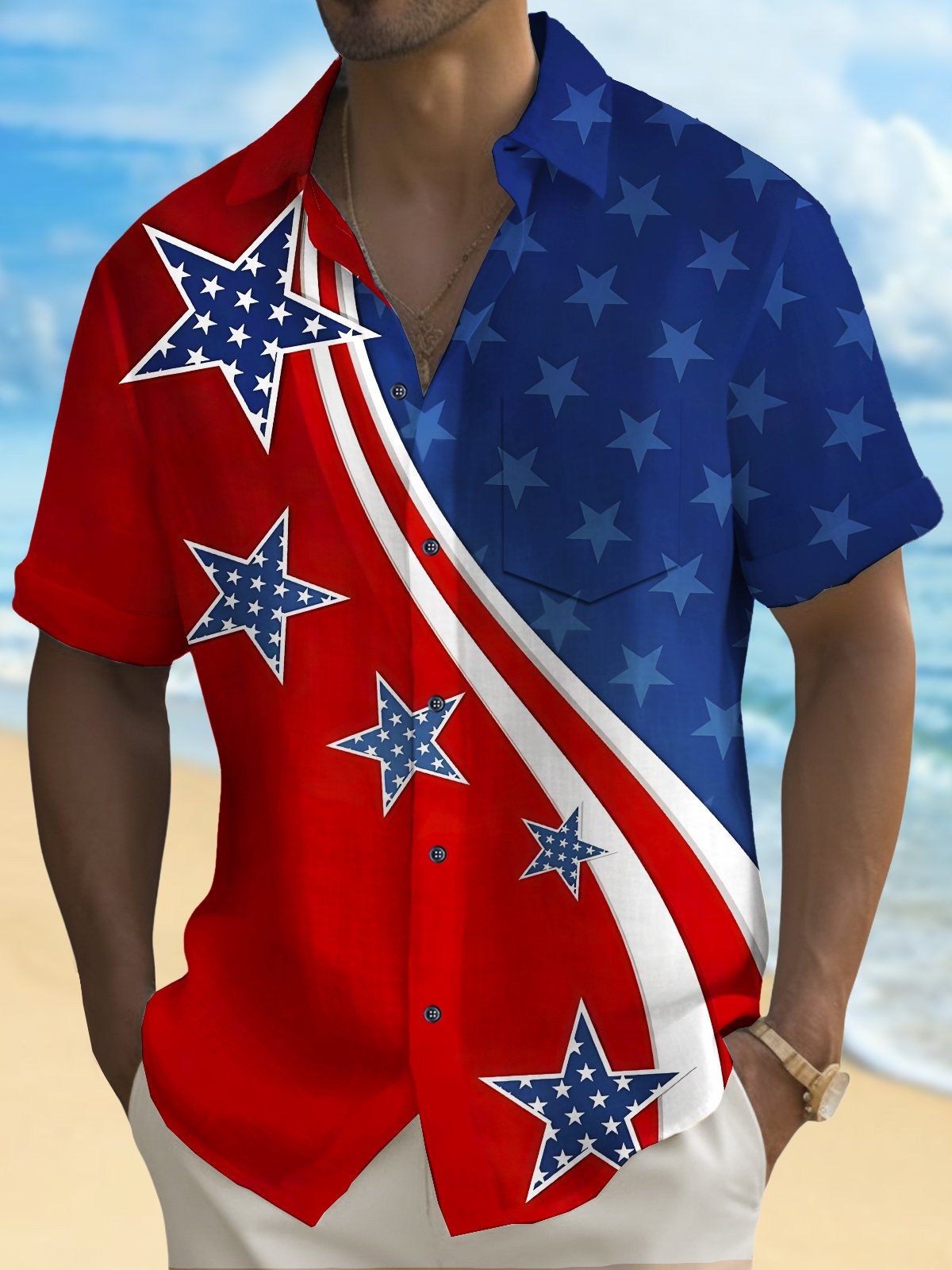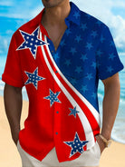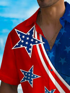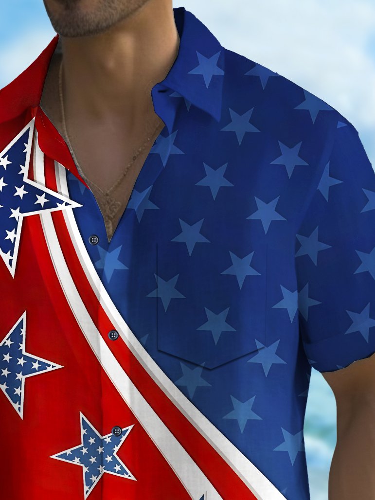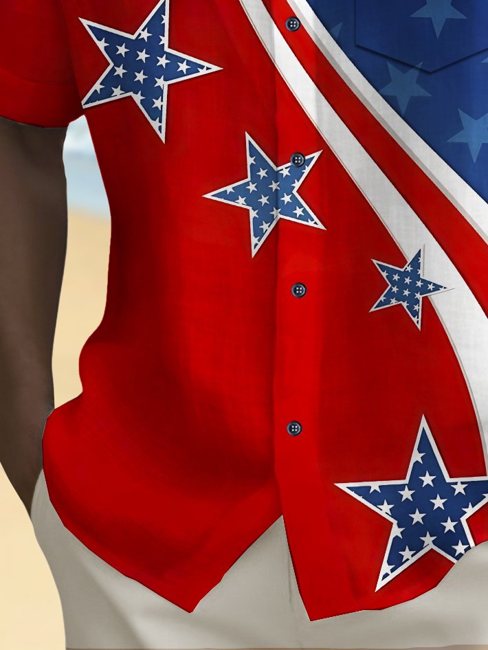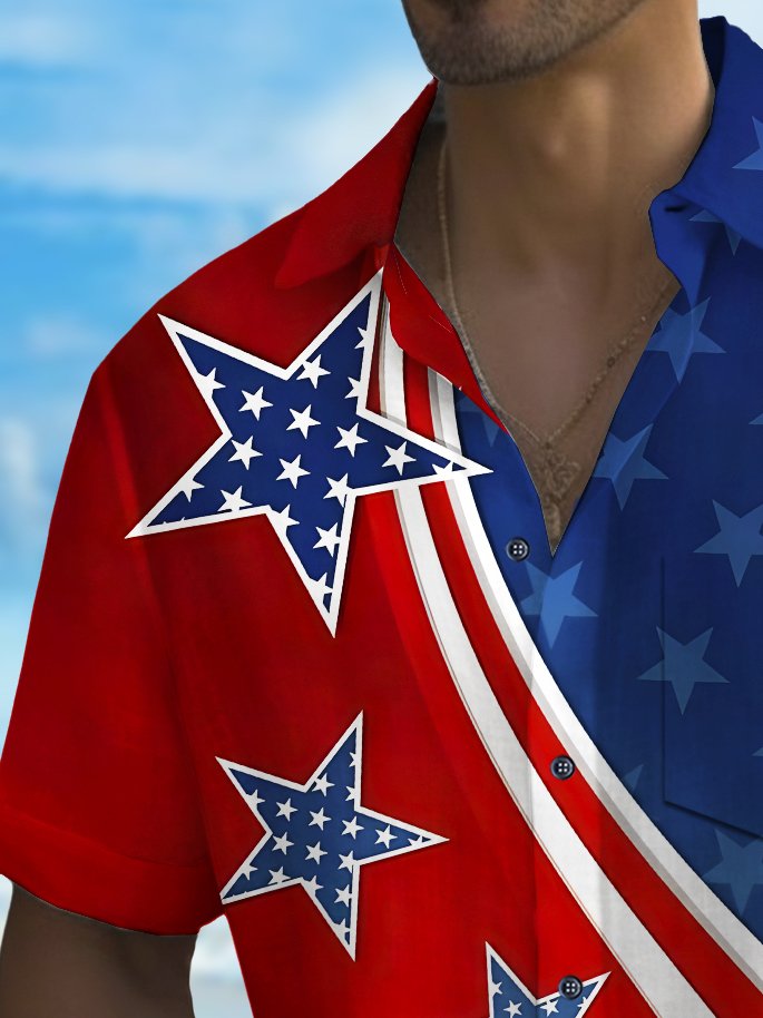 Alohadaddy Holiday Men's Independence Day Flag Printed Casual Breathable Short Sleeve Shirt Big Tall