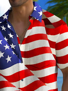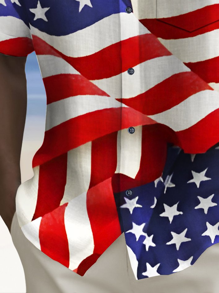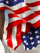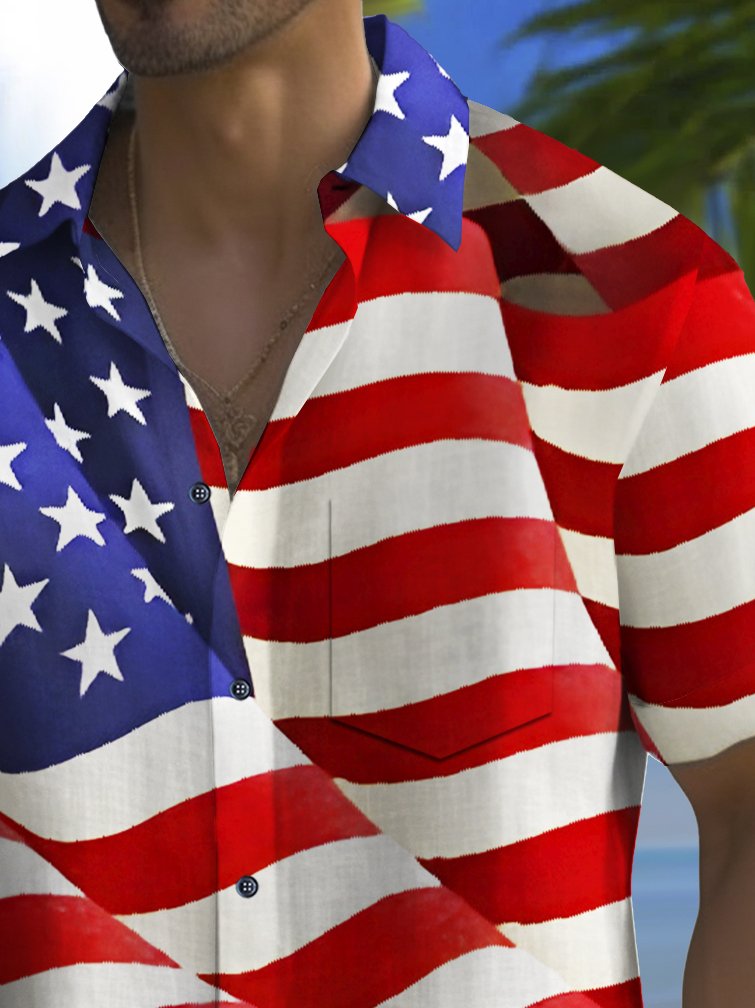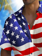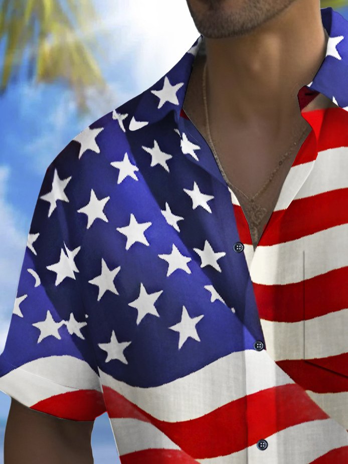 Alohadaddy Holiday Men's Independence Day Flag Printed Casual Breathable Short Sleeve Shirt Big Tall