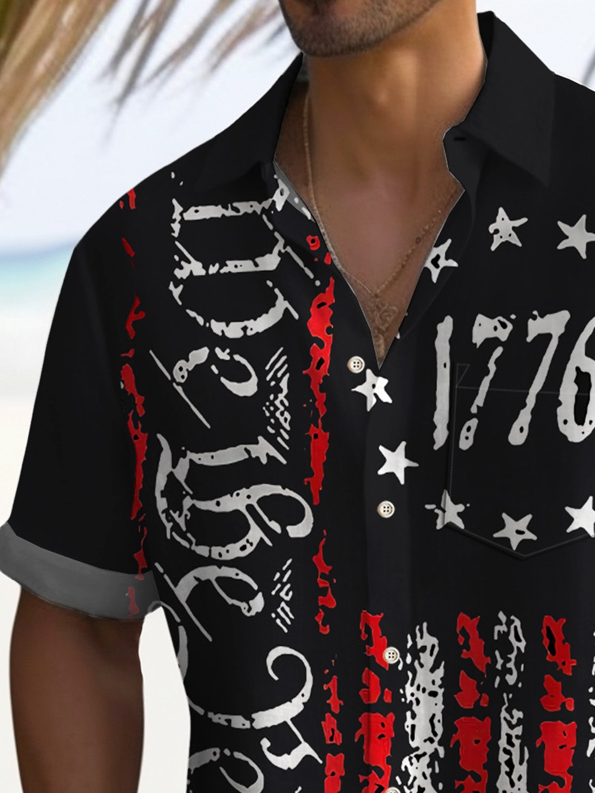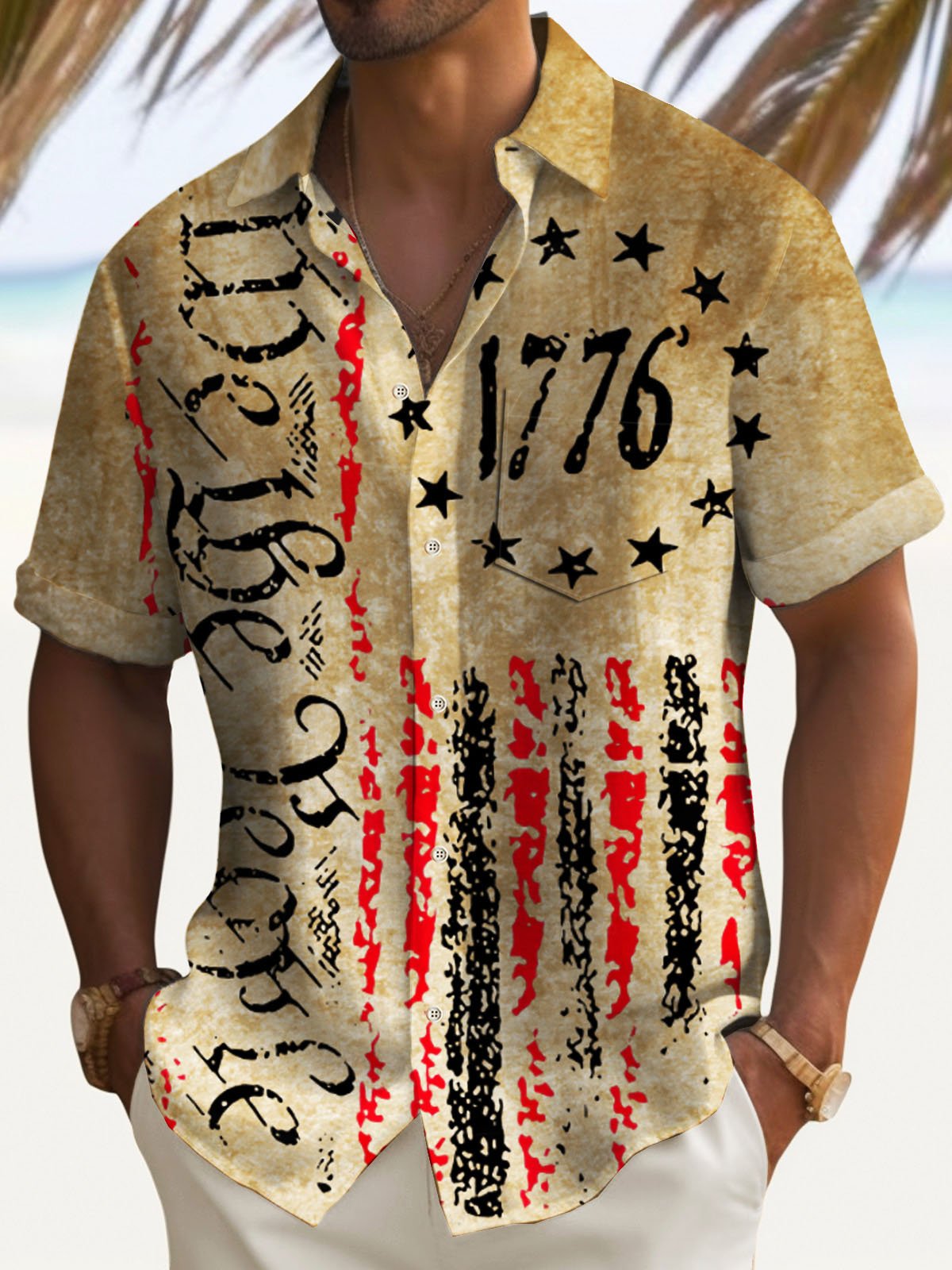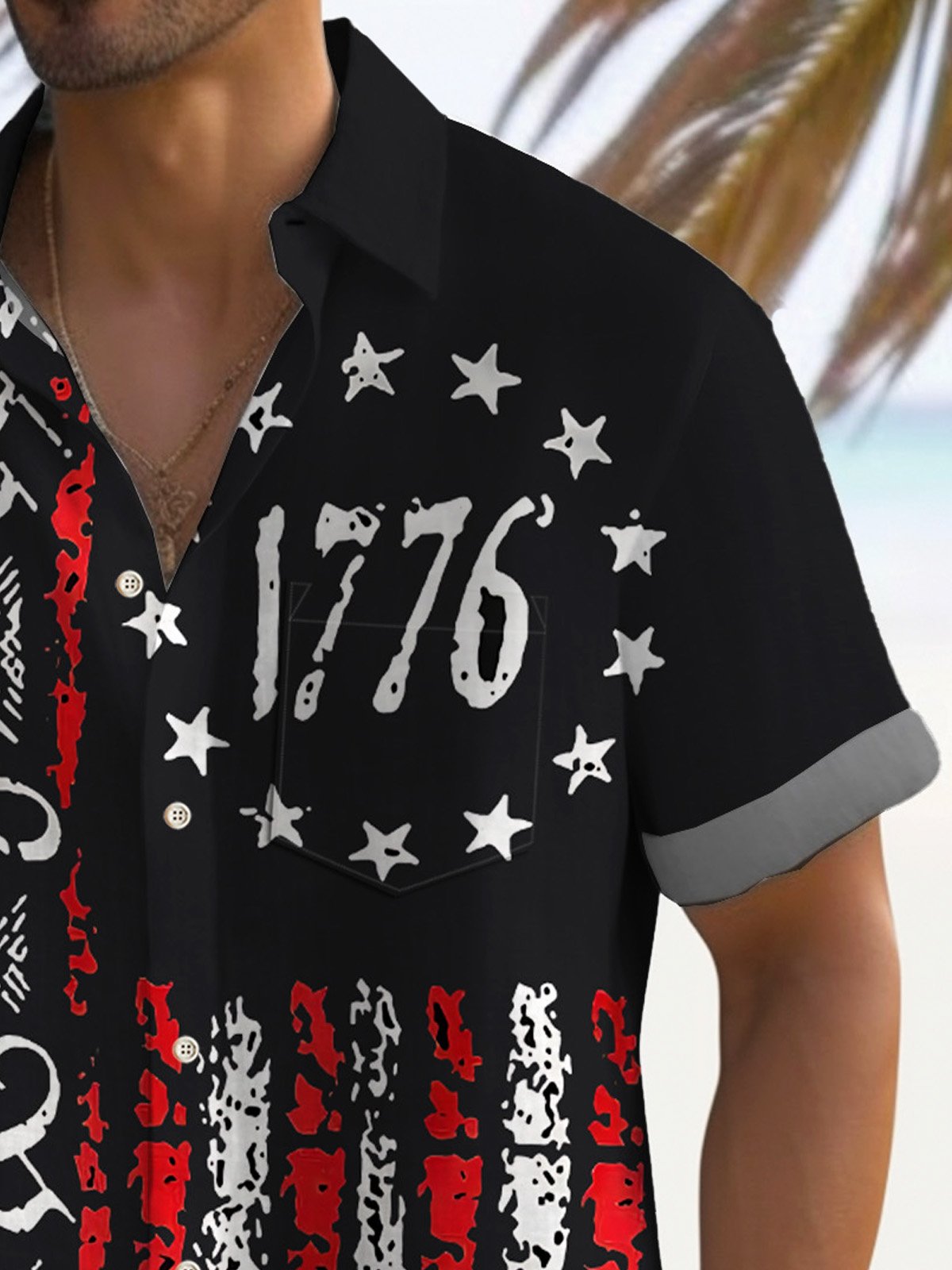 Alohadaddy Independence Day 1776 Men's Holiday Shirt Stretch Quick Dry Camp Pocket Shirt Big Tall