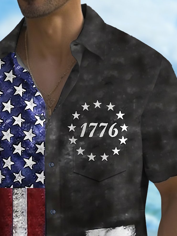 Alohadaddy Independence Day 1776 Men's Holiday Shirt Stretch Quick Dry Camp Pocket Shirt Big Tall