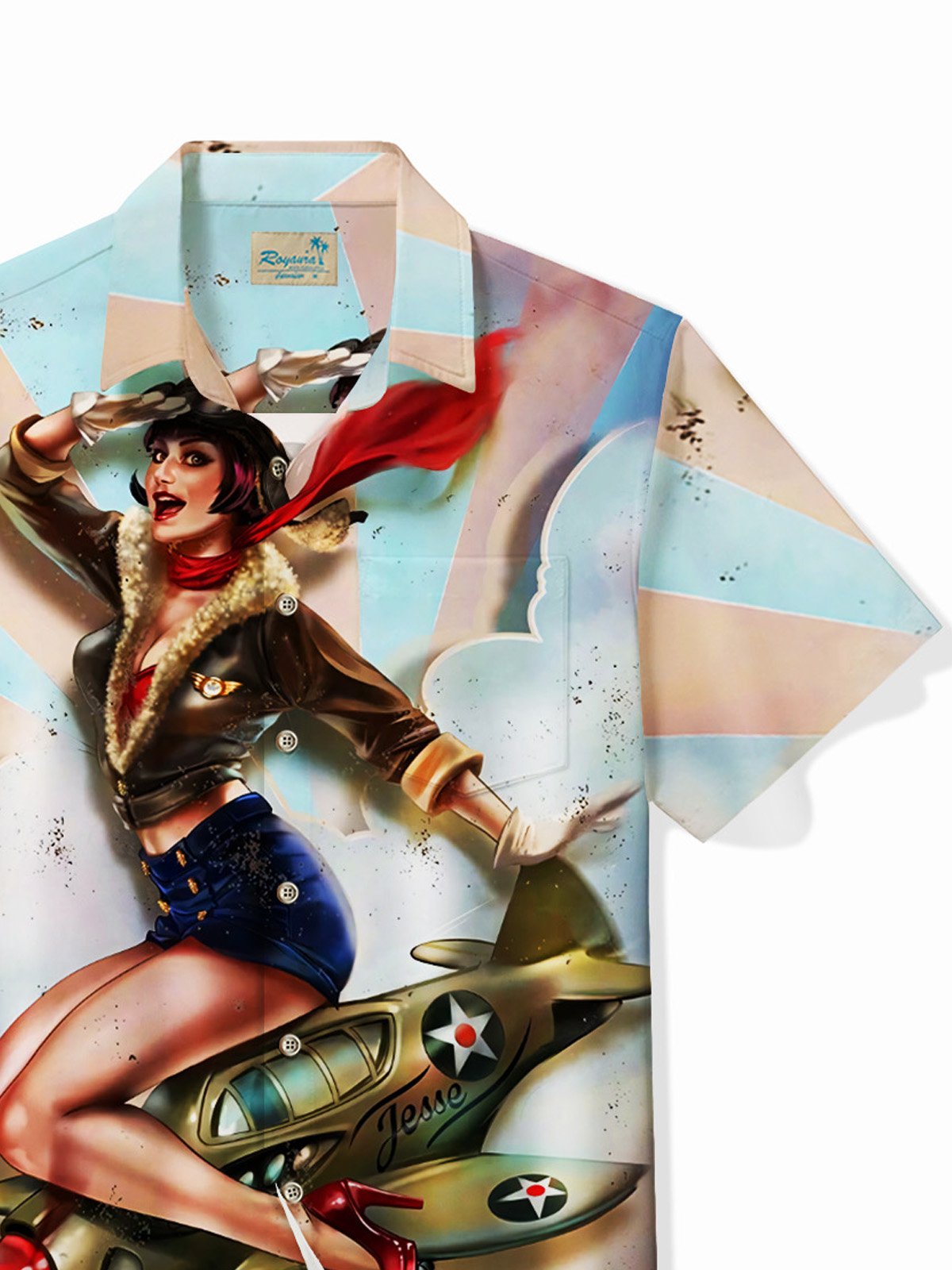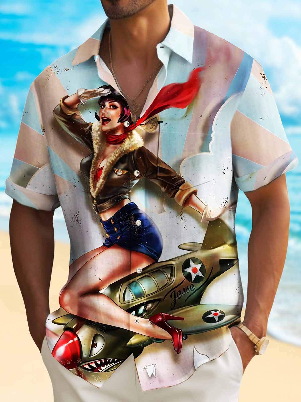Alohadaddy Independence Day Men's Hawaiian Shirt Atomic Bomb Poster Girl Art Quick Dry Pocket Shirt Big Tall