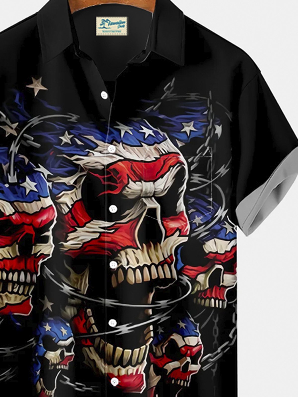 Alohadaddy Pocket American Flag Independence Day Skull 4th July Print Men's Big And Tall Shirt
