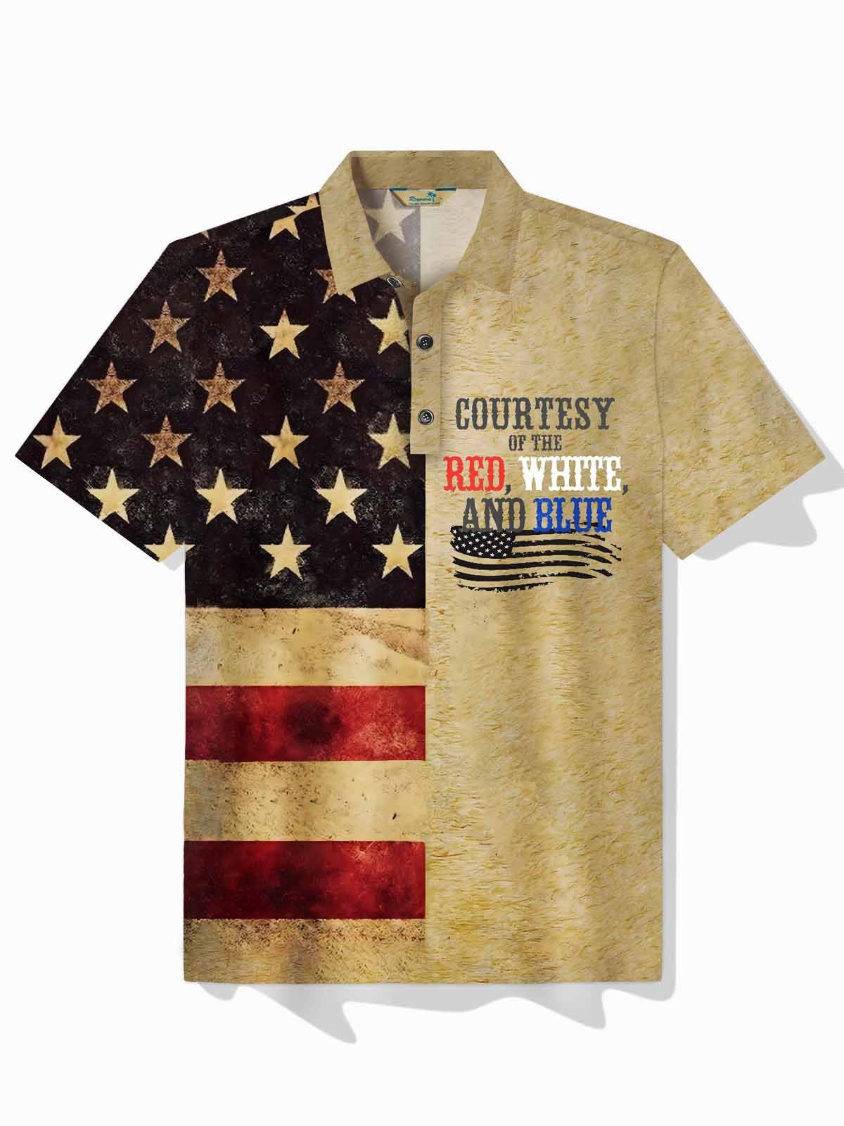 Alohadaddy Retro American Flag Men's Polo Shirt Stretch Quick-Drying Camp Outdoor Top Big Tall