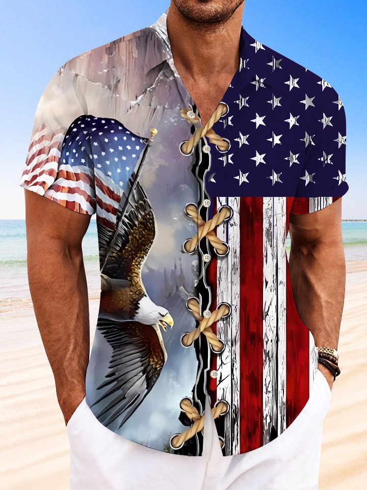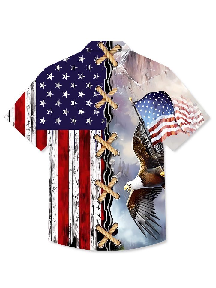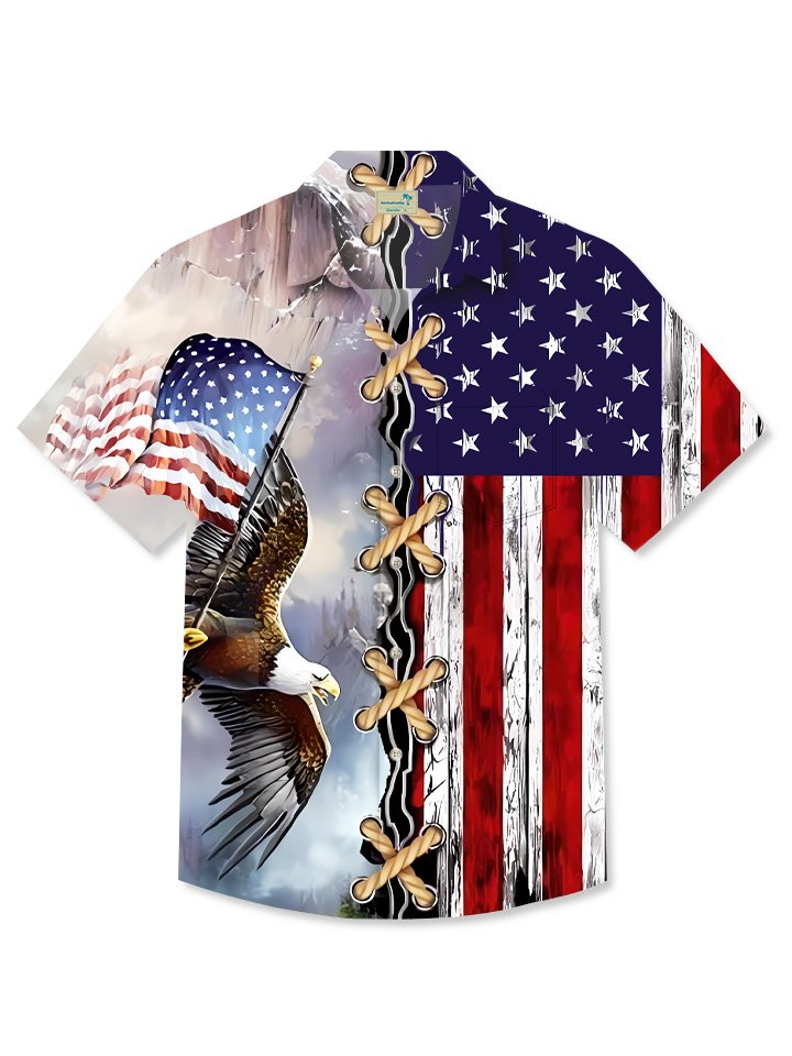 Alohadaddy Summer Independence Day Eagle Flag Button Pocket Casual Vacation Shirt