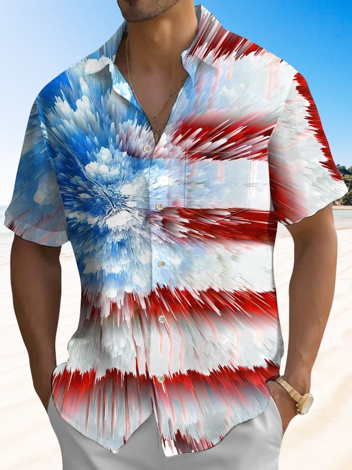 Alohadaddy Summer Independence Day Flag Button Pocket Men's Short Sleeve Casual Vacation Shirt